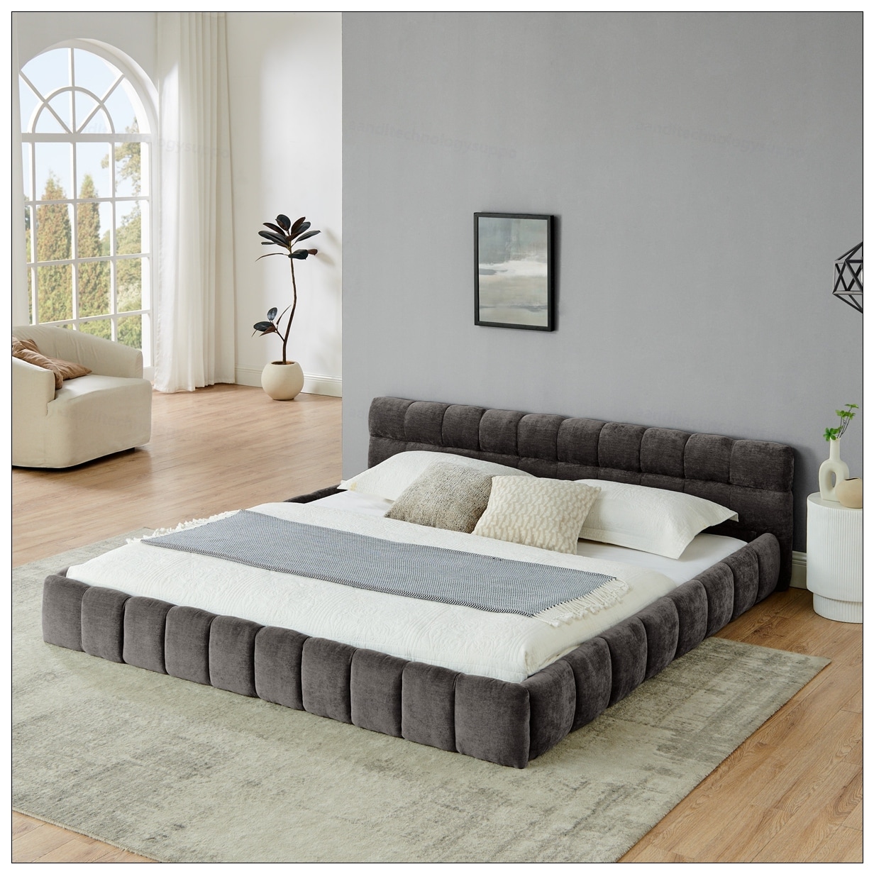 King Floor Chenille Bed Frame
