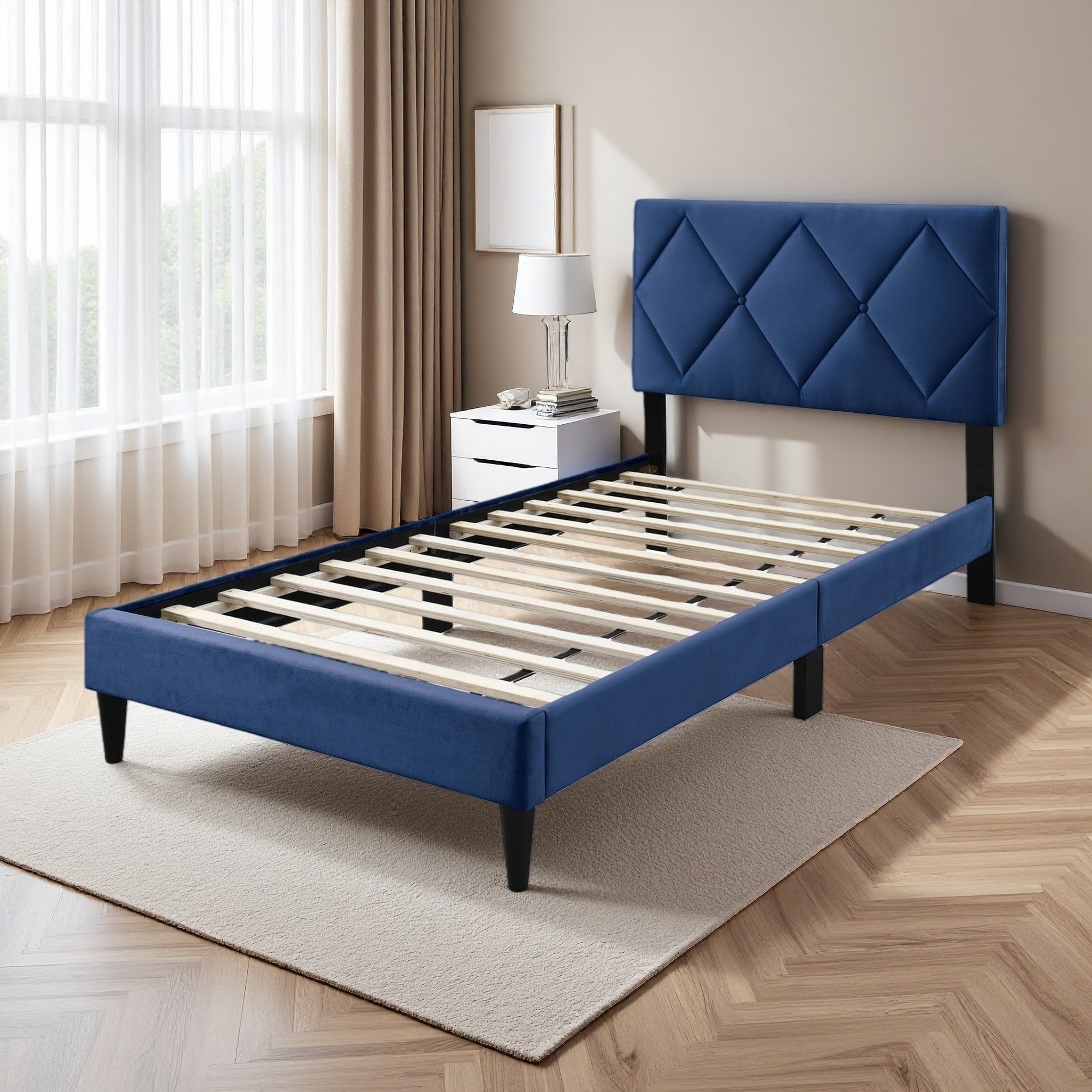 Twin Size Velvet Bed with Adjustable Tufted Headboard