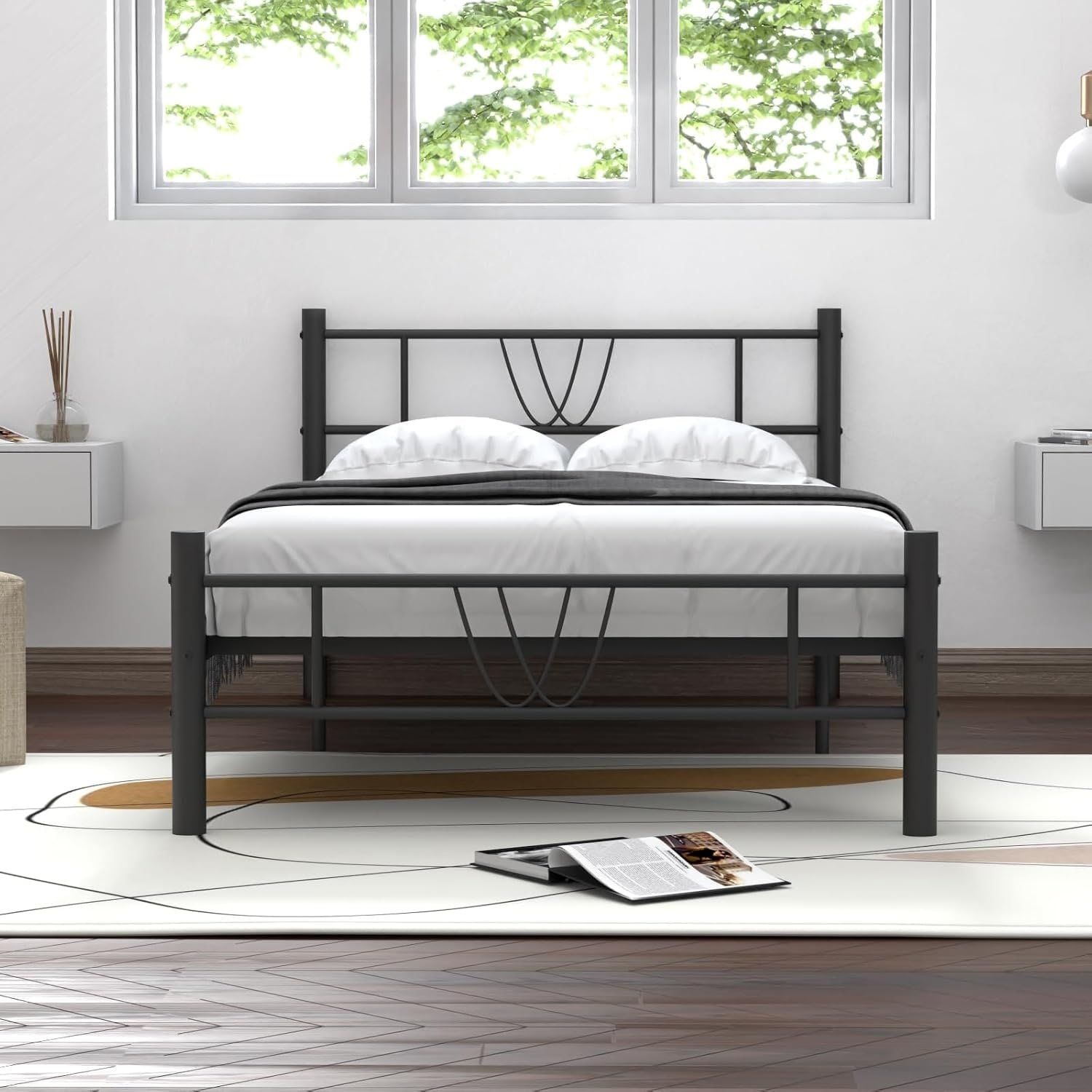 Twin Size Metal Bed Frame with Headboard, Underbed Storage, and Steel Slats, No Box Spring Needed, Black