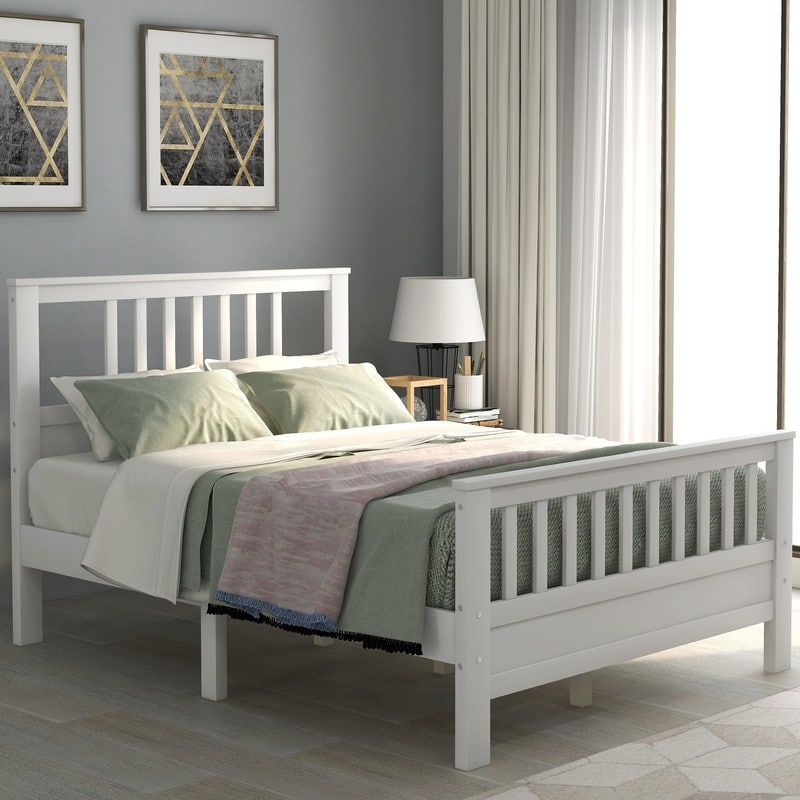 Wood Platform Bed with Headboard and Footboard, Full Size