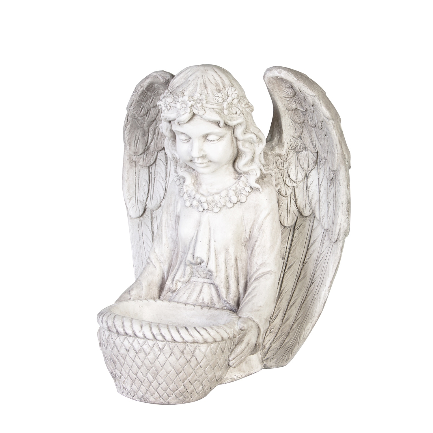 16"H Concrete Angel Bird Feeder Garden Statuary