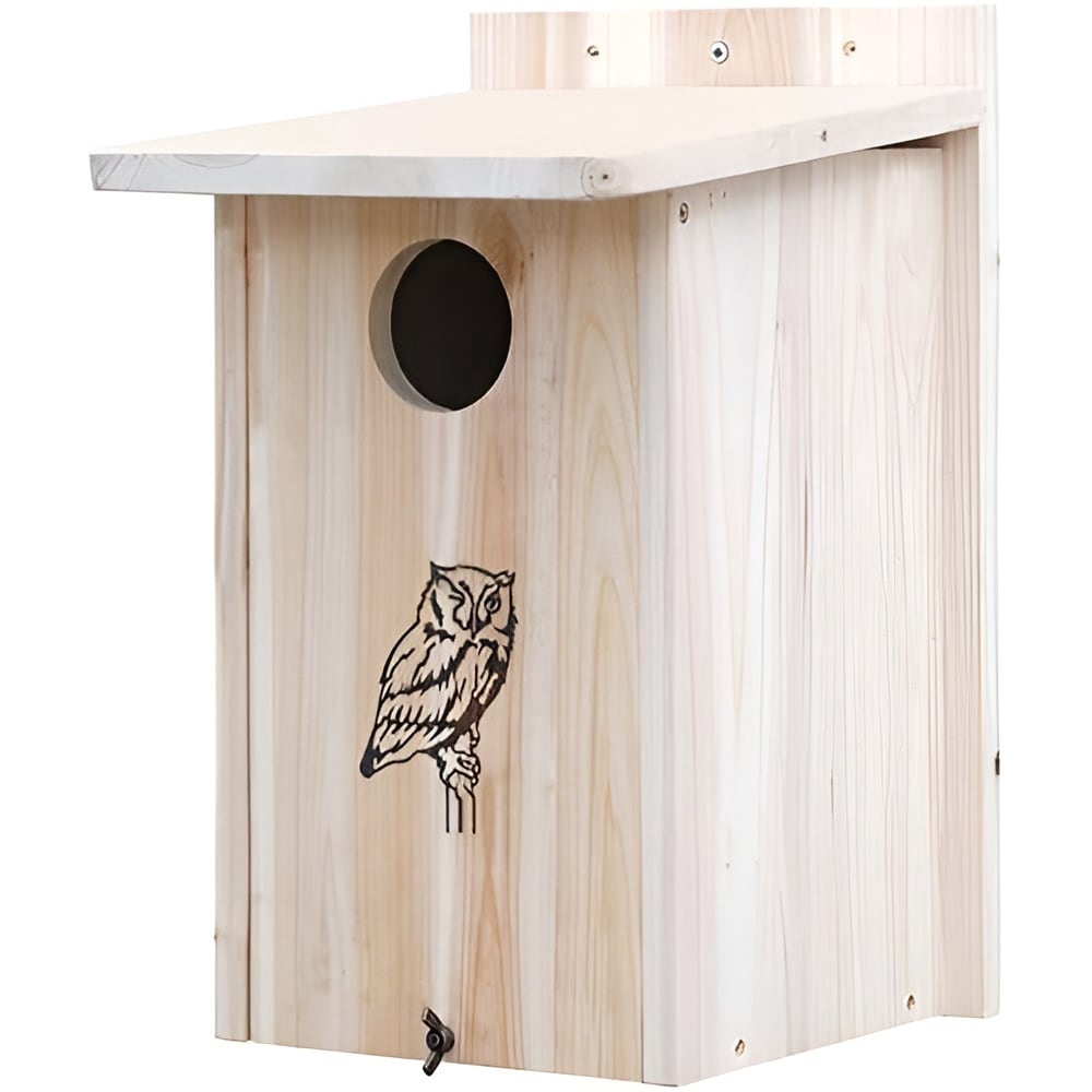 Tan Wood Birdhouse with Ventilation, Sloped Roof and Easy-Clean Panel - 12.5 x 11 x 18 inches (L x W x H)