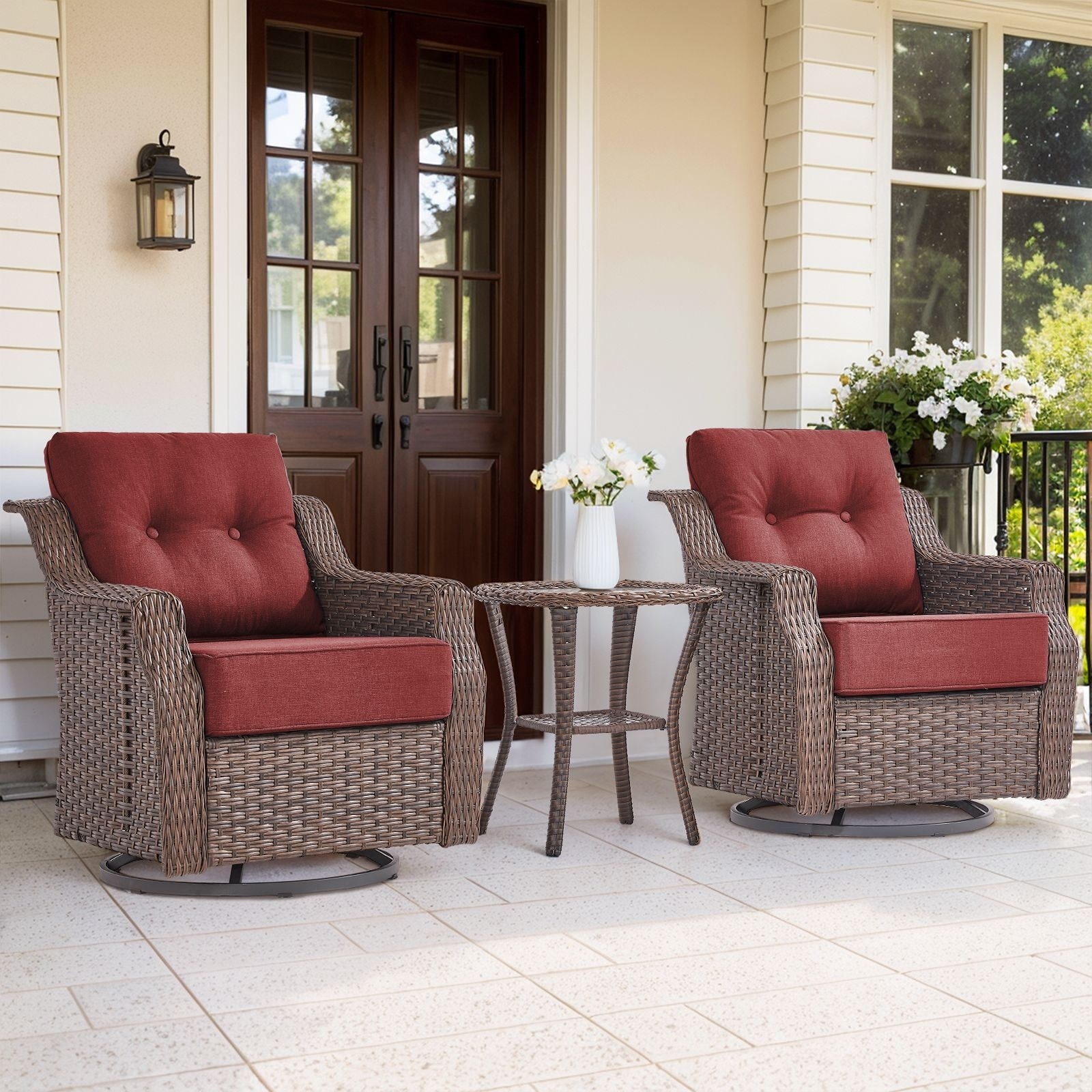 OVIOS 3-Piece Patio Wicker Swivel Chair Conversation Set