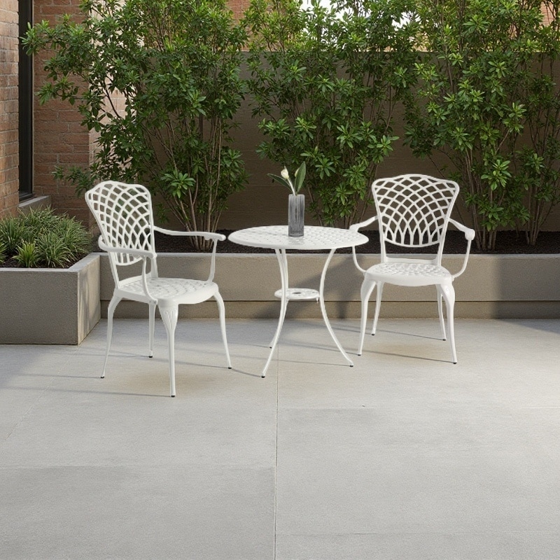 3-Piece Cast Aluminum Outdoor Bistro Set with Round Table and 2 Chairs, Weather-Resistant Patio Furniture with Umbrella Hole