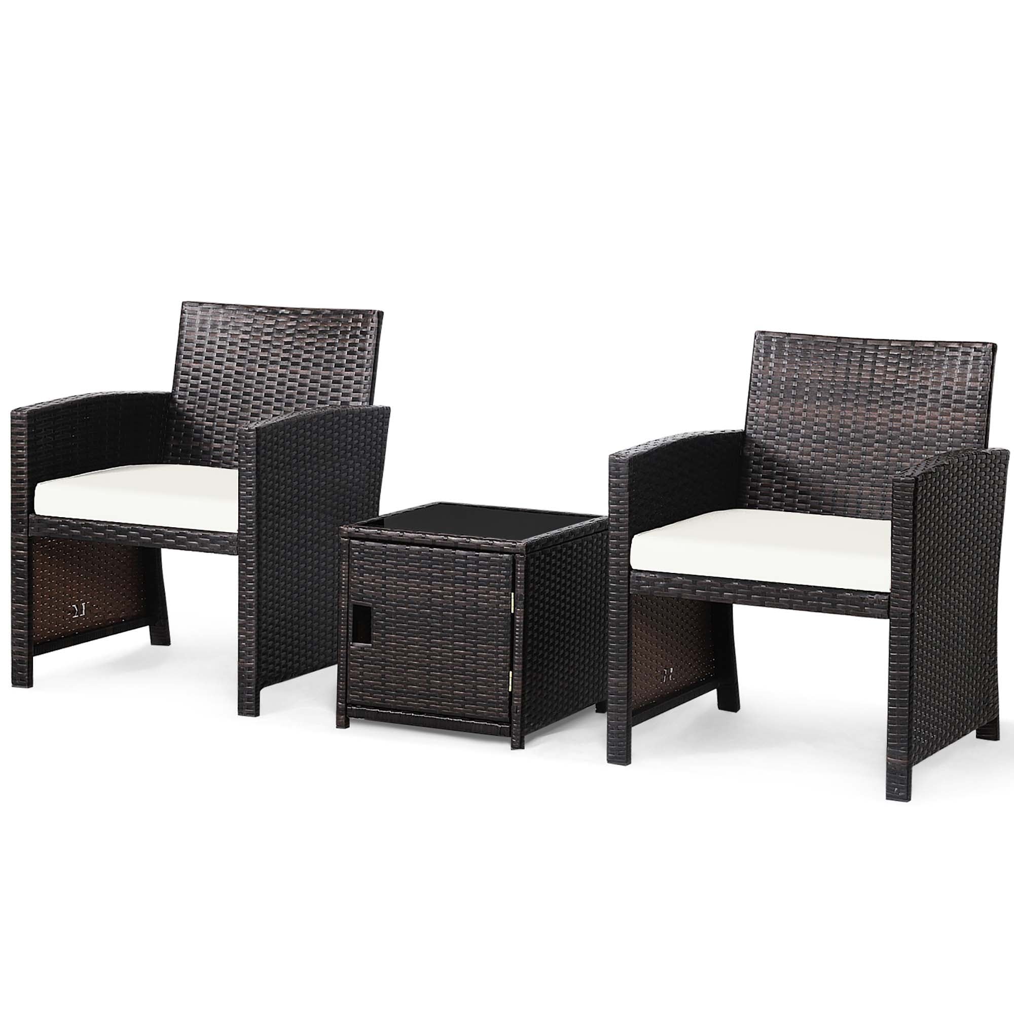 3 PCS Stable Outdoor Patio Wicker Chair Set with Comfortable Cushion