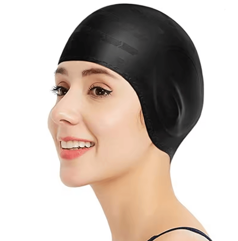 Waterproof Silicone Swimming Cap With Ear Protection For Adults black