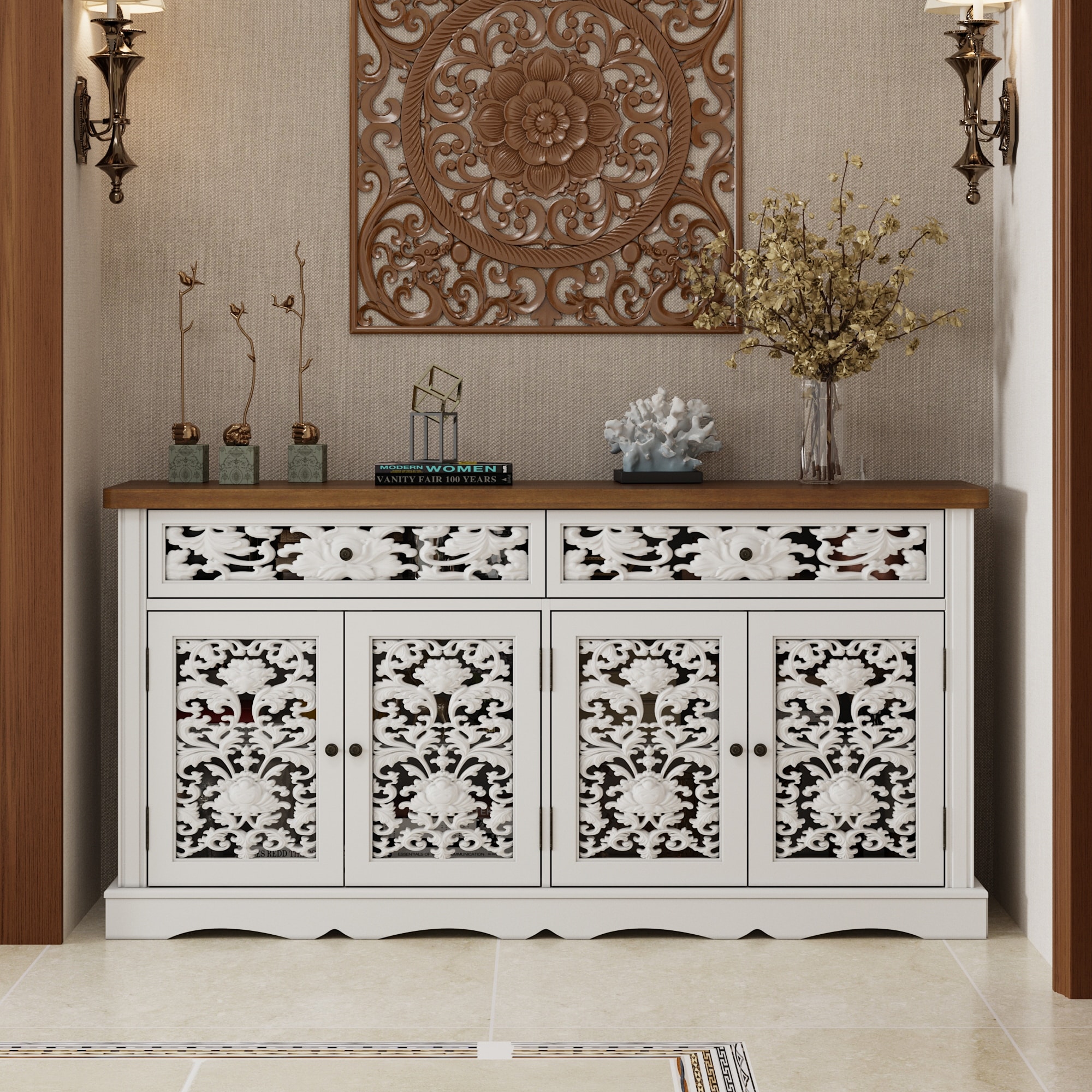 Antique Style Entryway Cabinet w/Hollow Carved Drawers and Wood Top Bookshelves Bookshelf