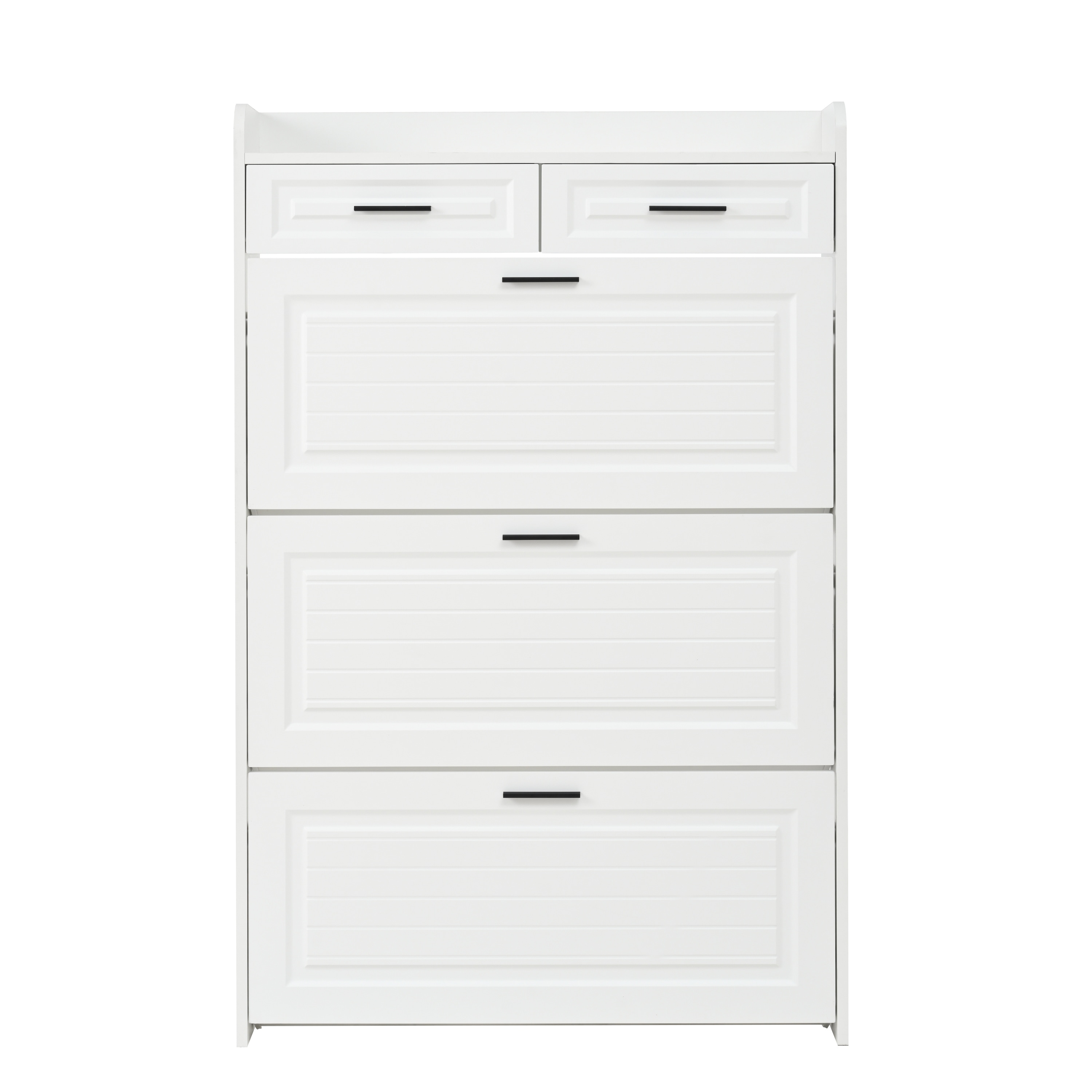 Large Storage Shoe Cabinet With Two Drawers & Three-Fold Doors.
