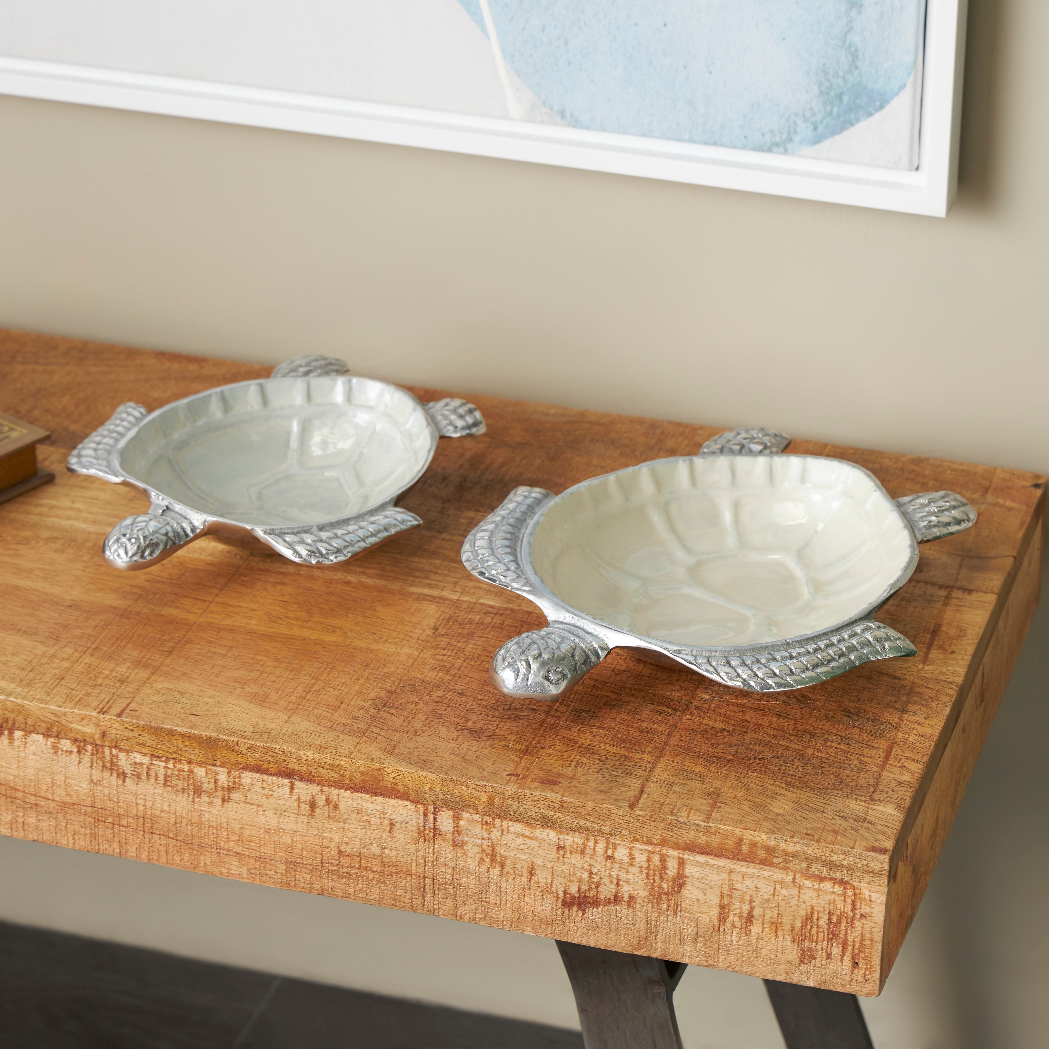 Aluminum Metal Enameled Turtle Decorative Bowl with Silver Metal Exterior (Set of 2)
