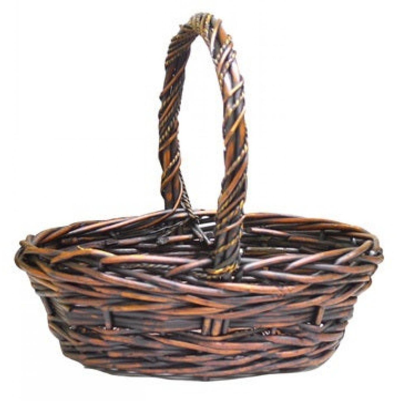 12.5"H Mahogany Brown Long Handled Willow Basket