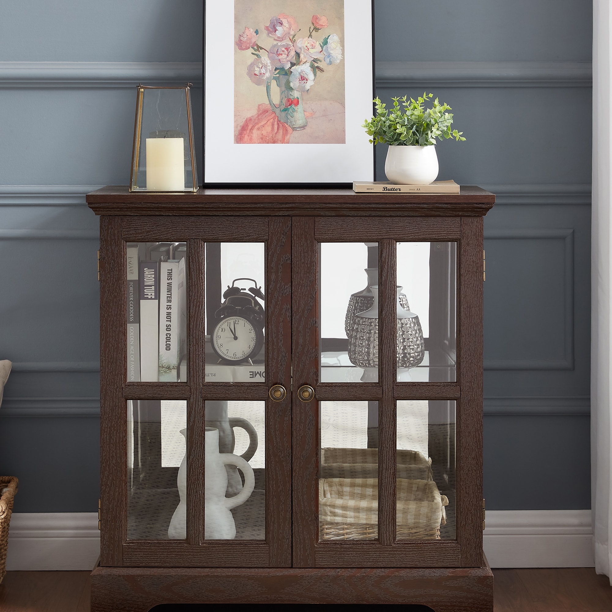 Clihome LED Antique Curio Display Cabinet with Adjustable Shelves & Lattice Doors