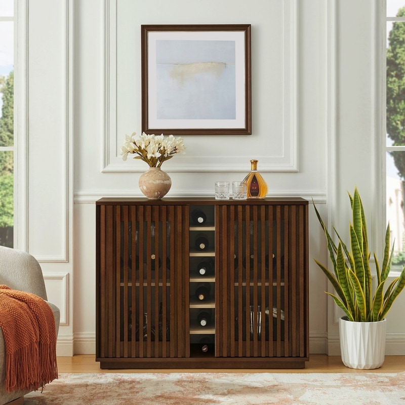 Mid Century Modern Fluted Buffet Cabinet with Wine Glass Holder and Wine Rack