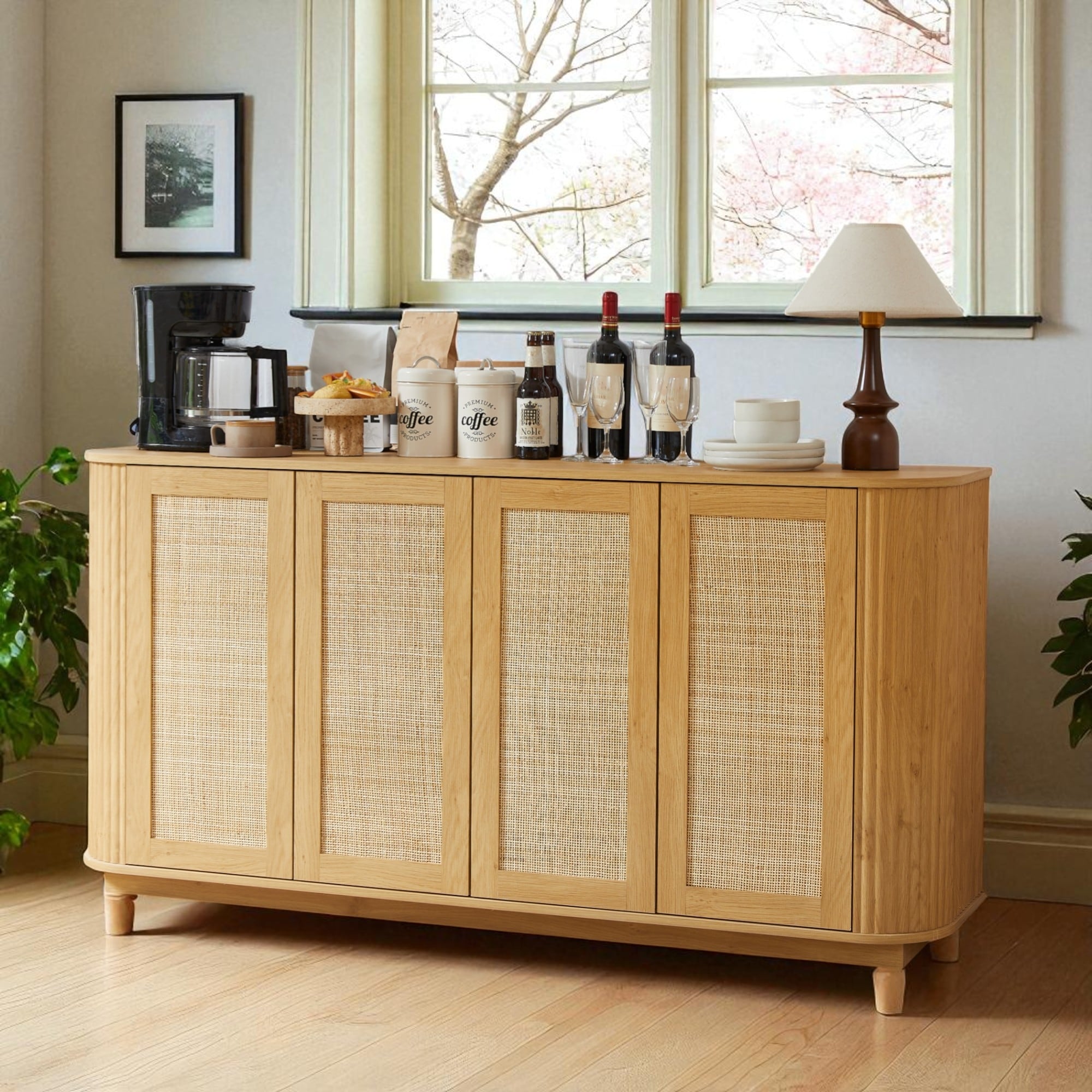 Kitchen Sideboard Buffet Storage Cabinet with Rattan Doors, Coffee Bar Cabinet