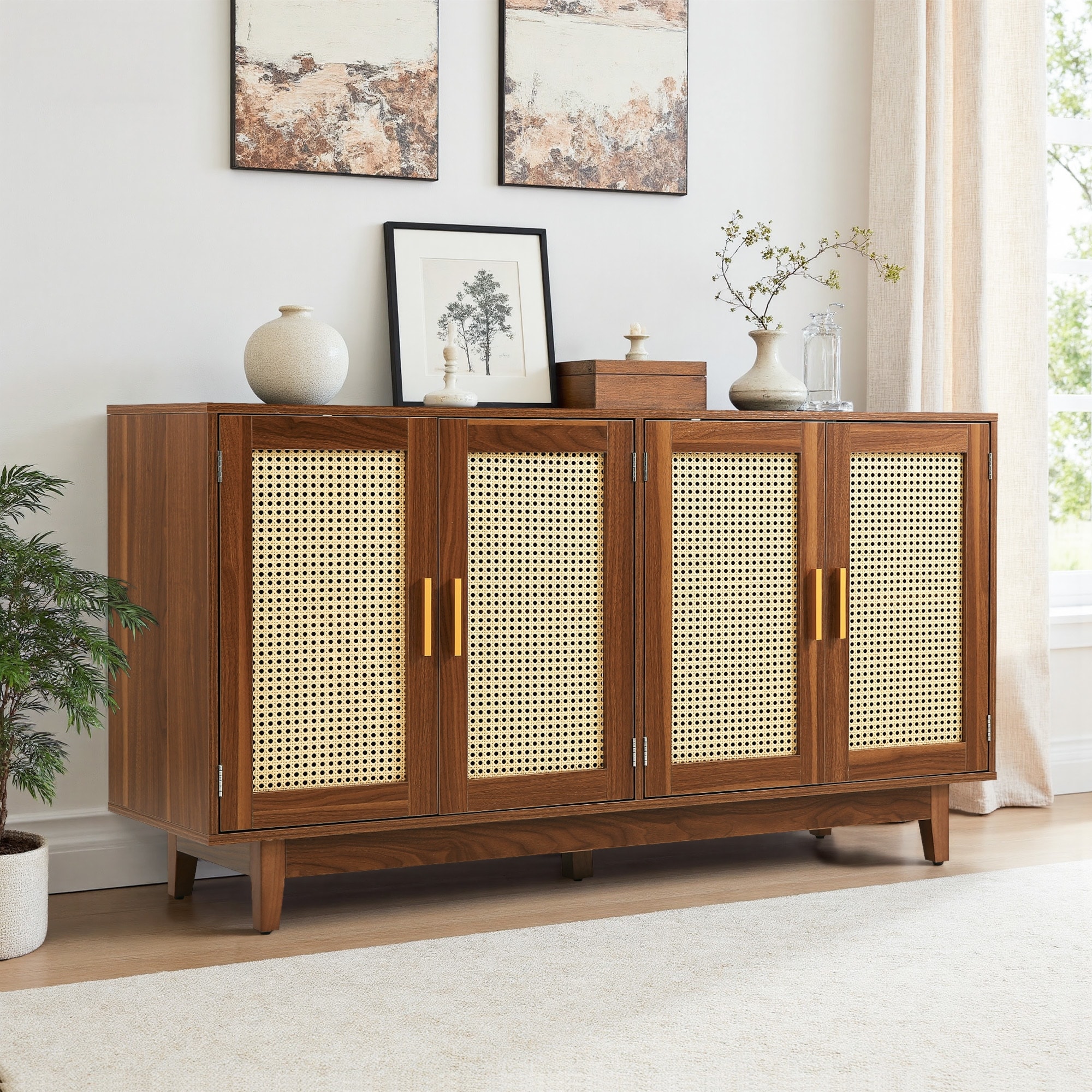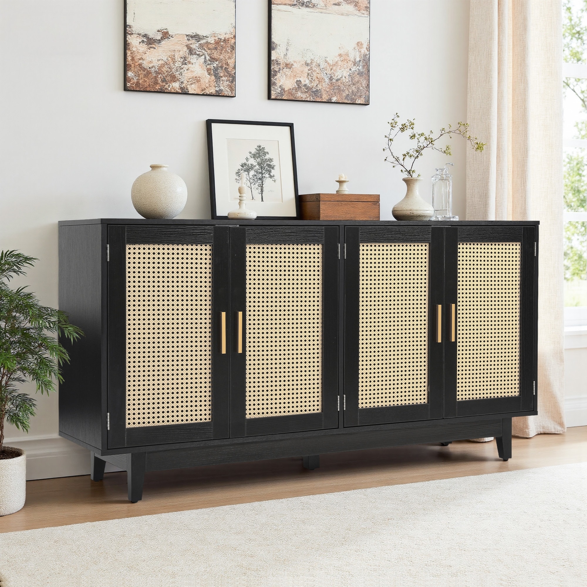 Rattan Sideboard Buffet Cabinet, Accent Storage Cabinet with 4 Doors and Shelf