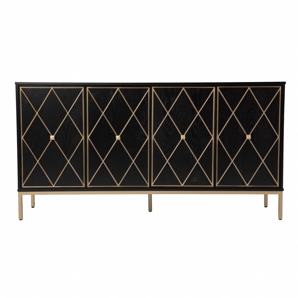 Black Gold Wood Sideboard Cabinet Storage Drawers - 61.25"H x 31.75"W x 16.5”D