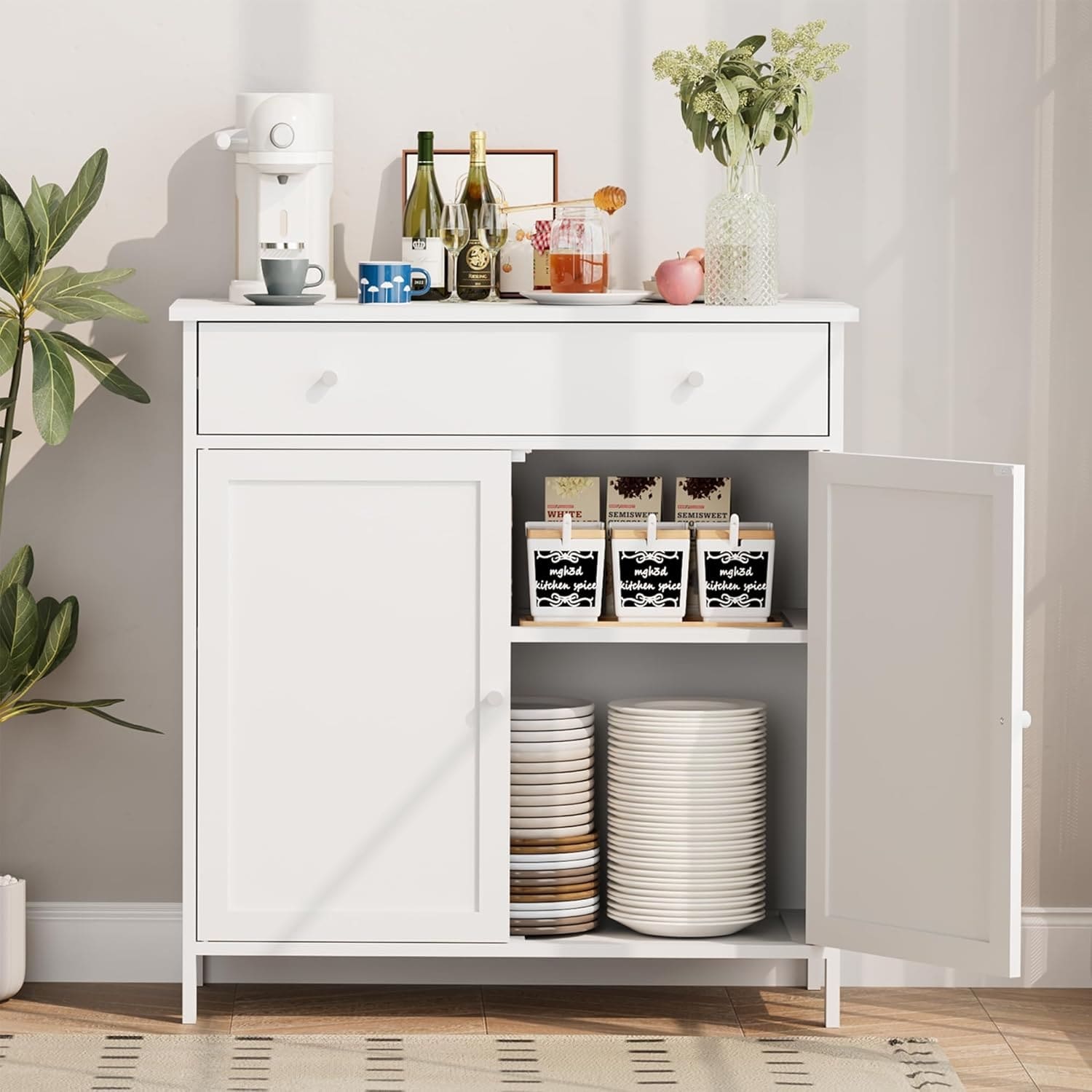31" Large White Sideboard Buffet Storage Cabinet, Kitchen Table Coffee Bar Station with a Drawer and Adjustable Shelves