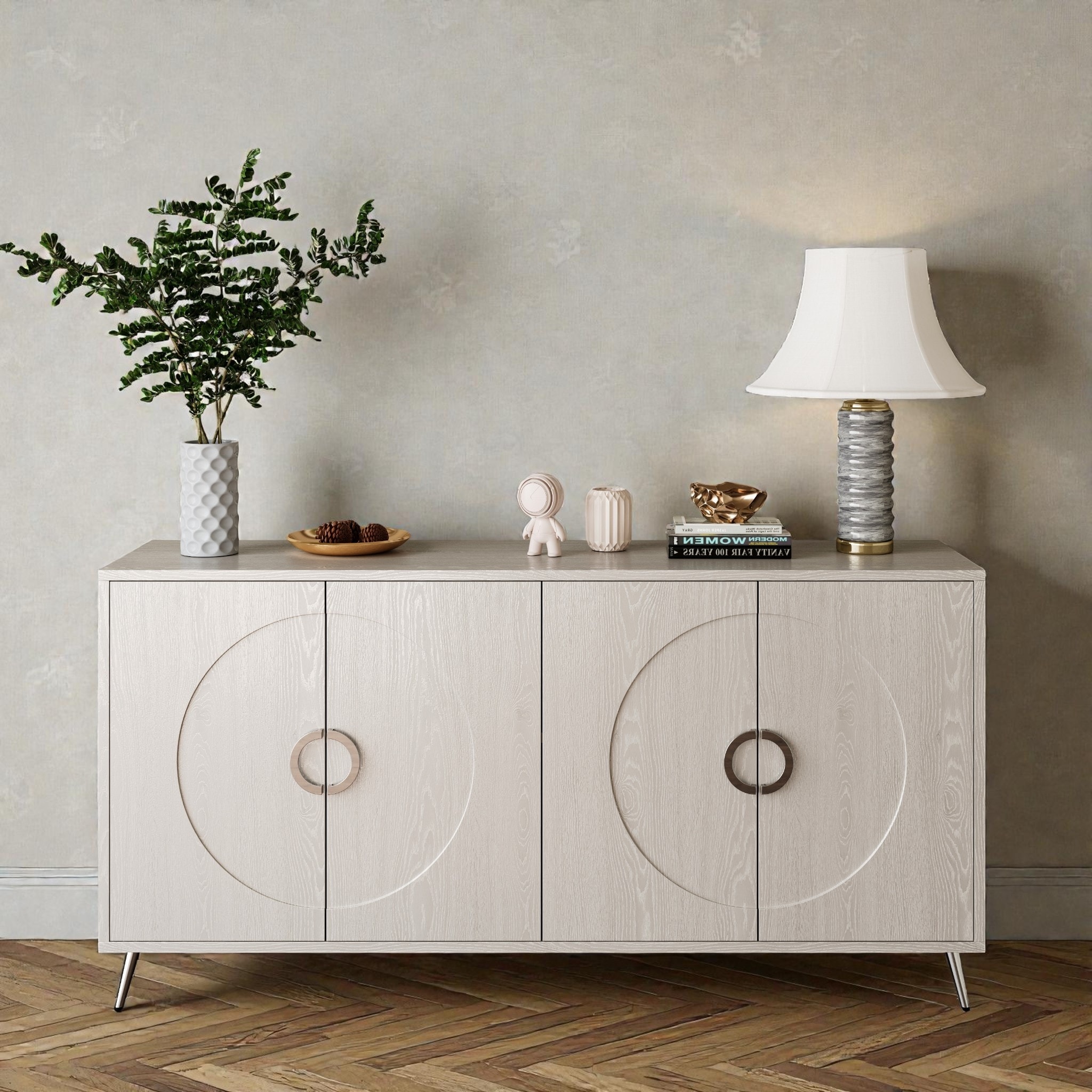 4-Door Sideboard Buffet Cabinet with Adjustable Shelves, Solid Wood Frame and Round Metal Handles for Kitchen