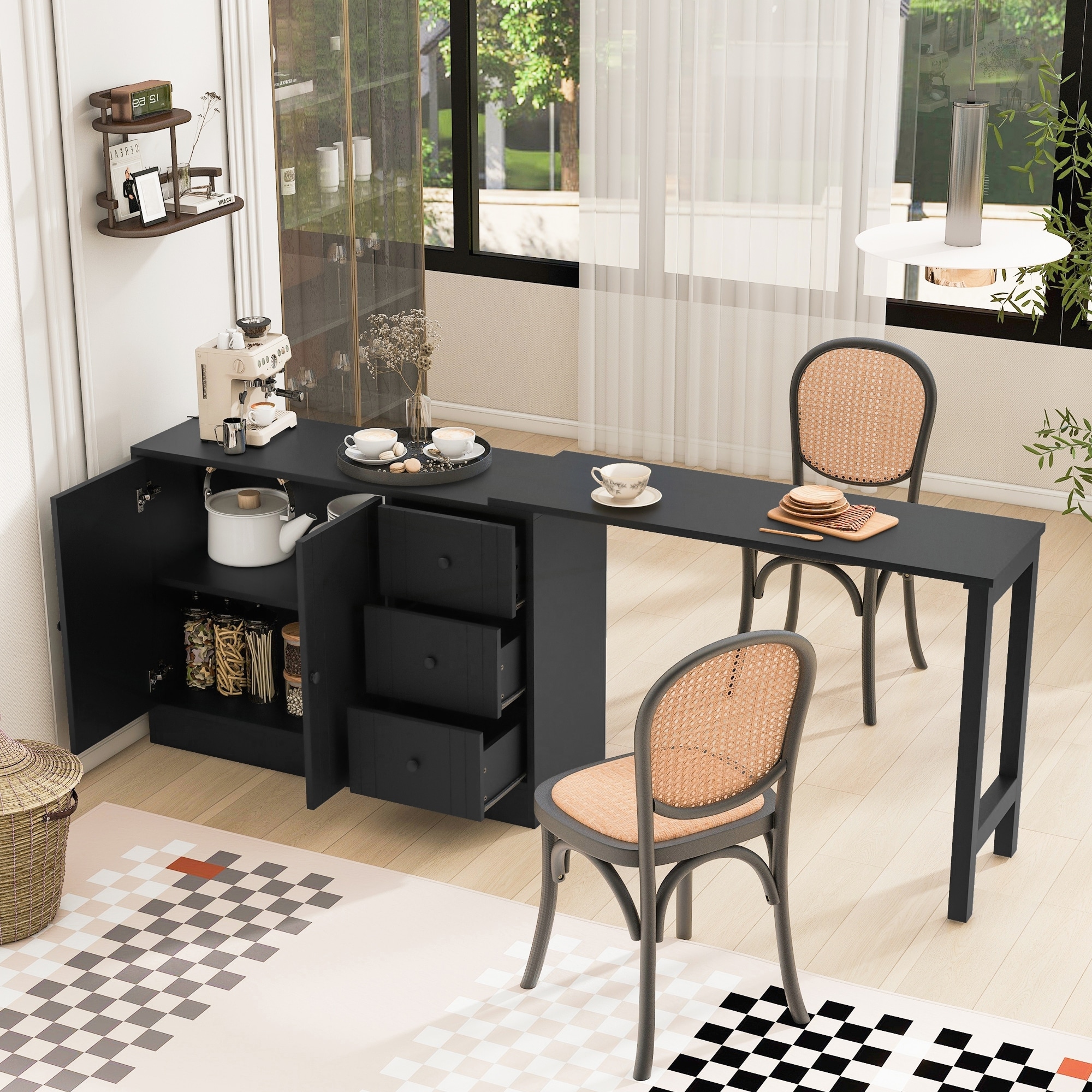 58" Modern Wavy Curve Sideboard-Multifunctional Storage Cabinet With Wine Rack And Glassware Holder, Adjustable Shelves