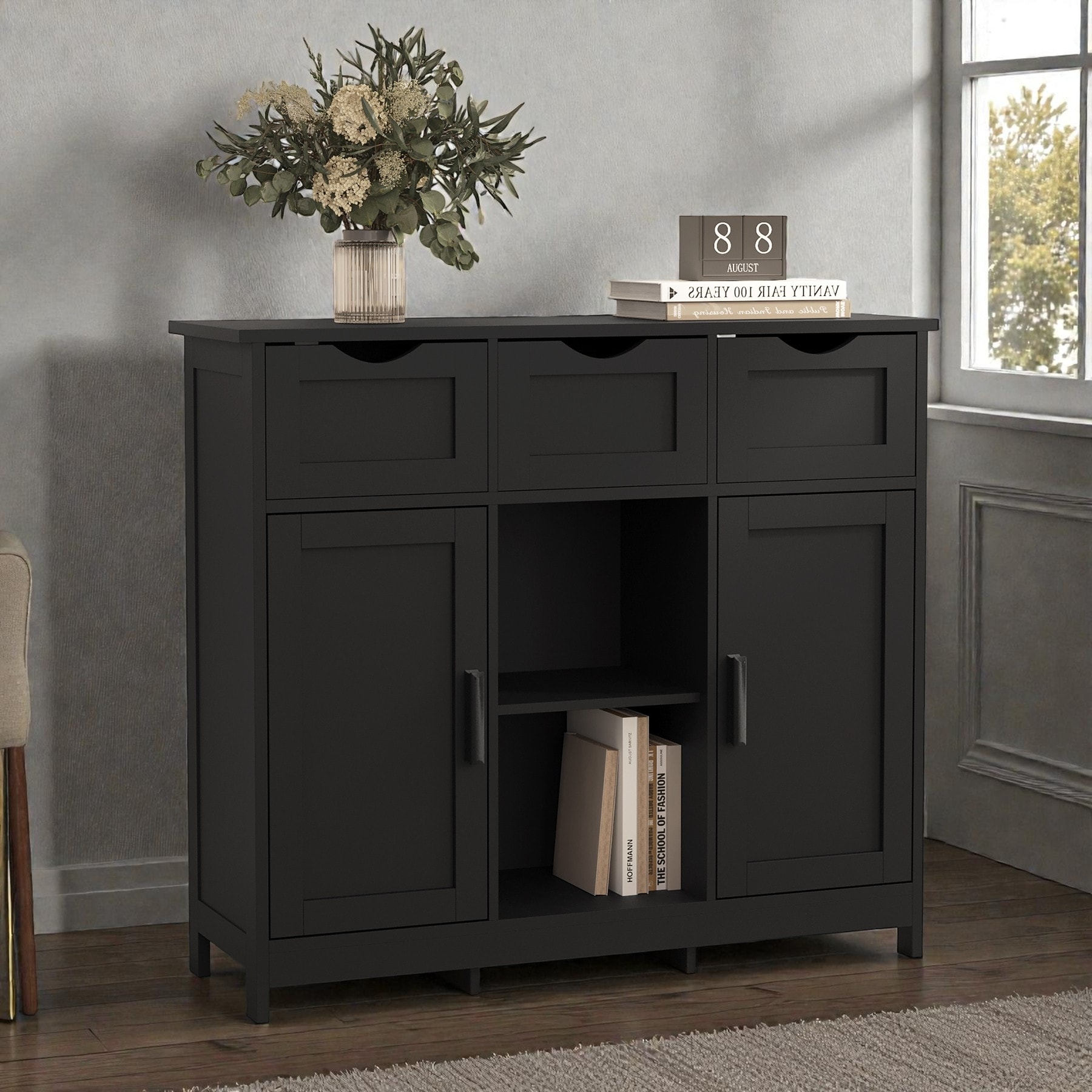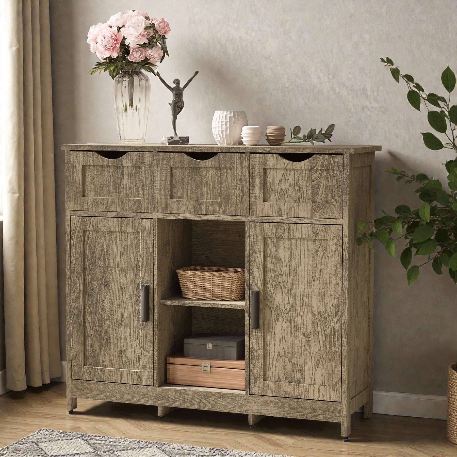 Wood Storage Cabinet with Drawers and Adjustable Shelves, Buffet Cabinet, Sideboard, Floor Accent Console Cabinet for Living