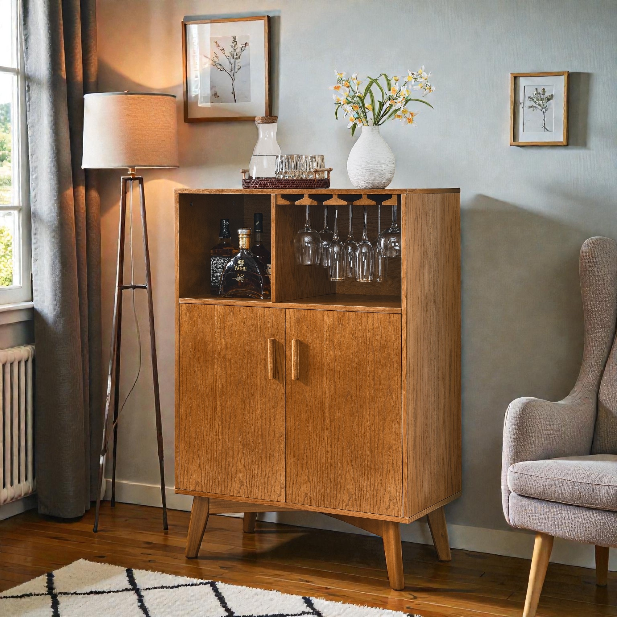 Lafayette Bar Cabinet with 4-Bottle Rack, Upper Glass Holder and Dual Door Design