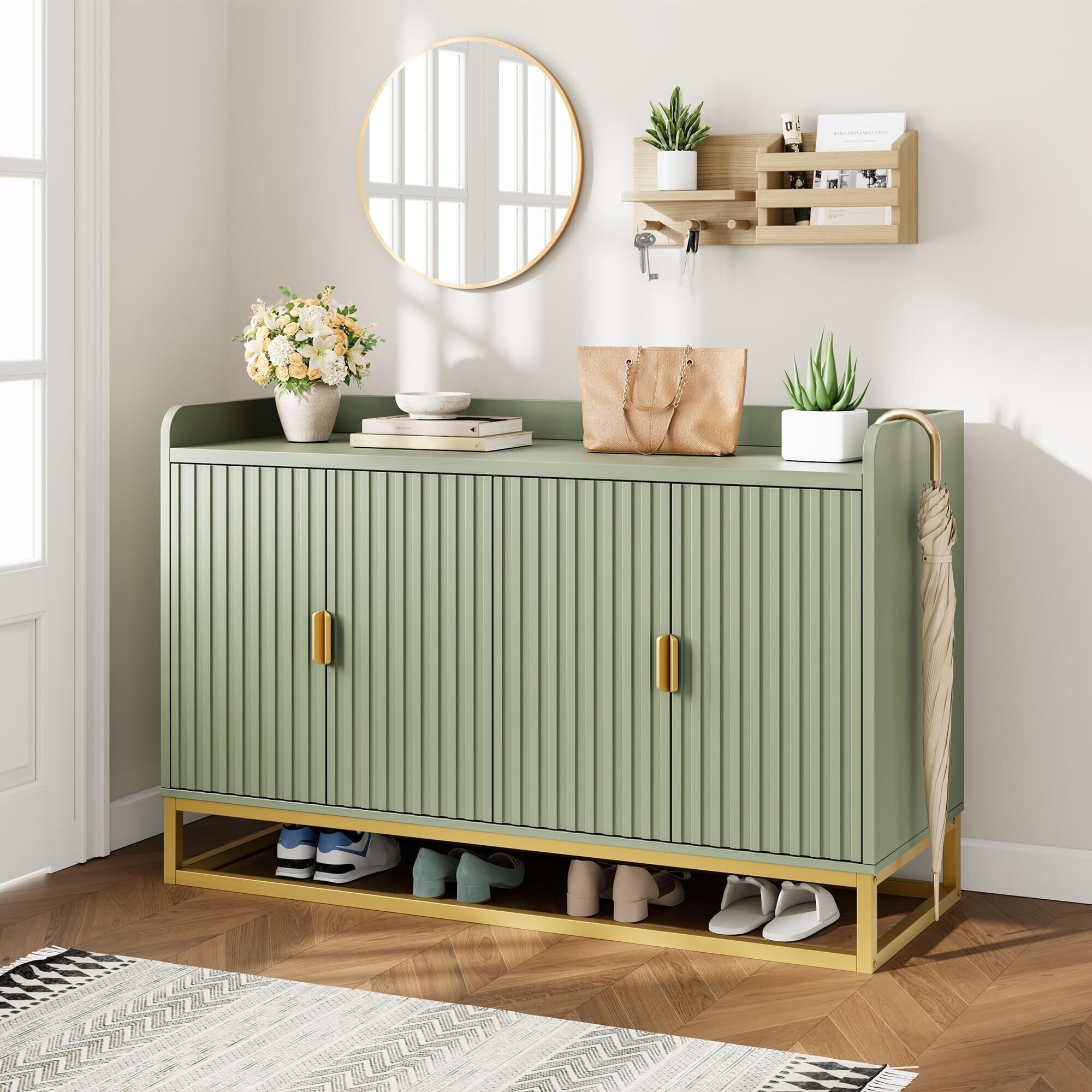Modern Fluted Sideboard Buffet with Adjustable Shelves, Gold Base & 4 Doors for Kitchen or Dining Room