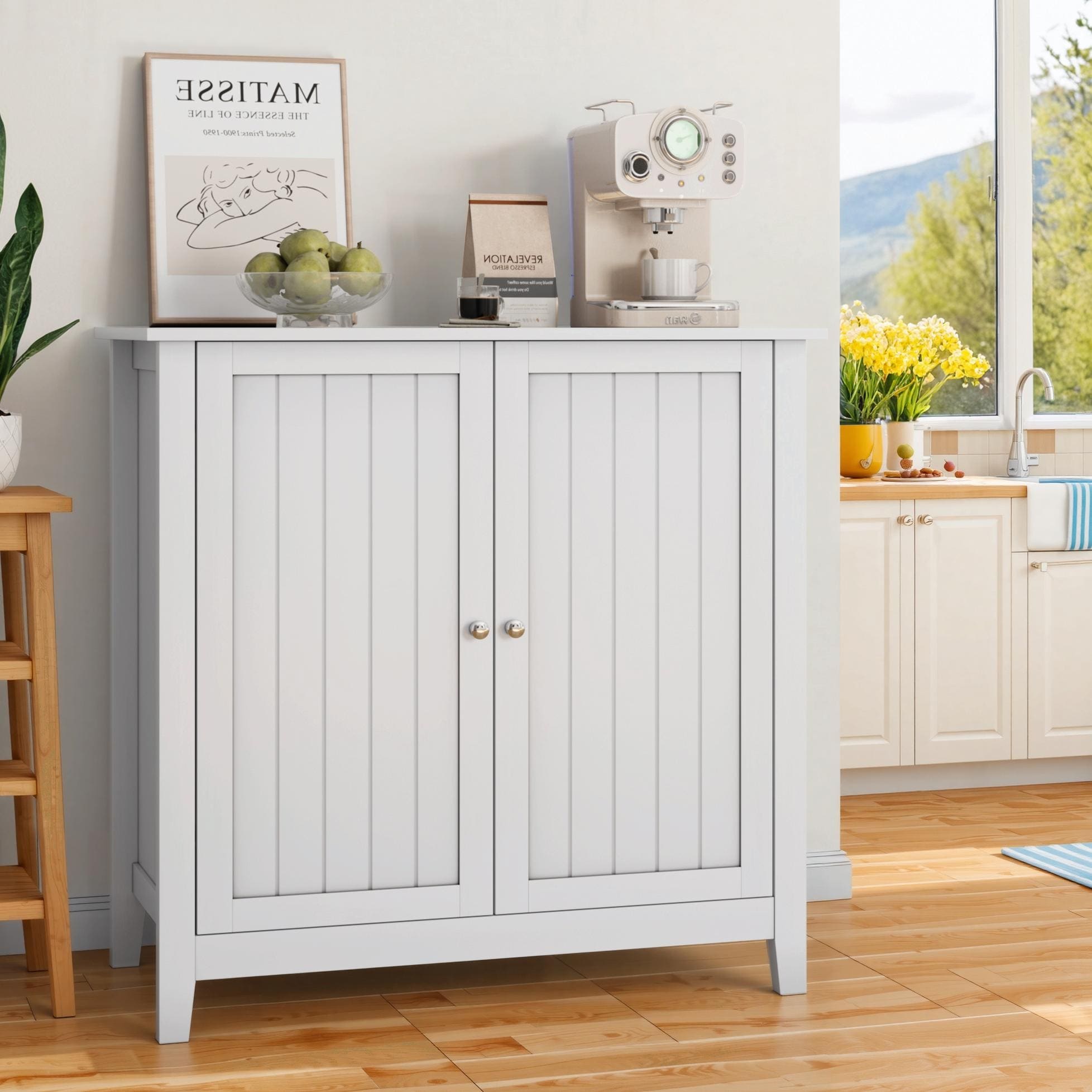 Farmhouse Kitchen Storage Cabinet Buffet Sideboard with Slatted Doors, Wooden Coffee Bar Cabinet Accent Cabinet for Dining Room