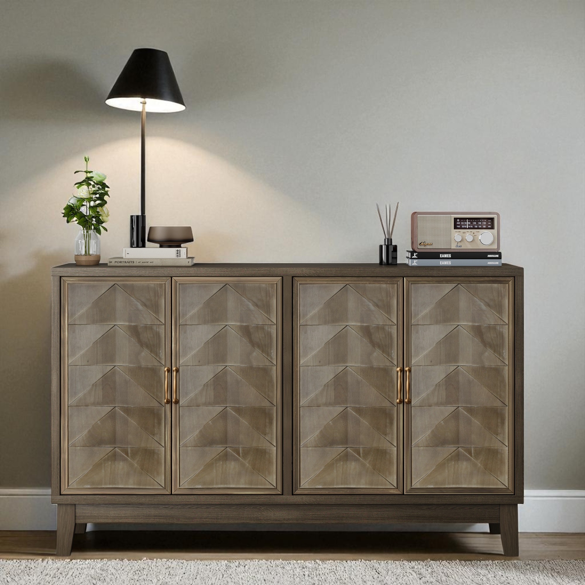 59" Fir Veneer Sideboard Buffet Cabinet with Embossed Texture, Adjustable Shelves & Rounded Doors for Entryway