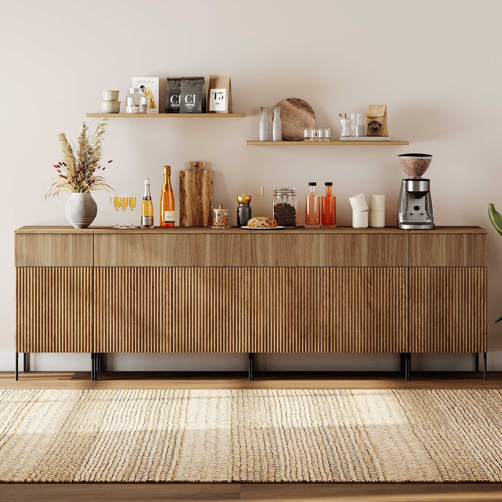94.5" Wooden Sideboard With Reeded Design, 4-In-1 Modern Credenza With Charging