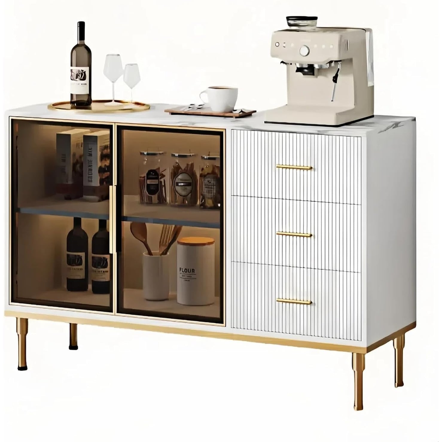 WAMPAT Modern Sideboard with Adjustable Shelves, 3 in 1 Storage Cabinet with Glass Doors, Coffee Bar Cabinet for Kitchen