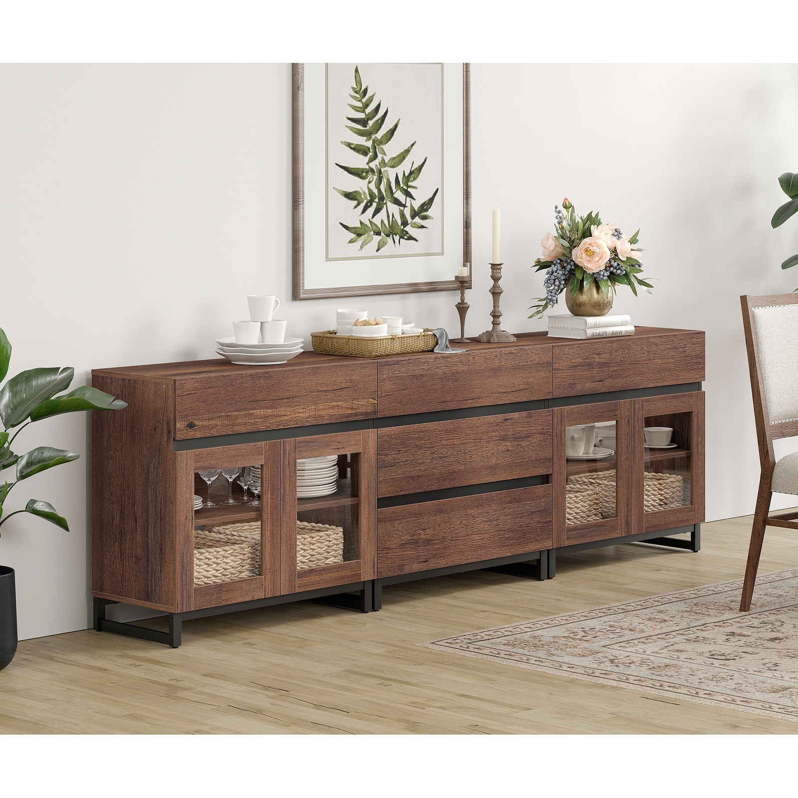 WAMPAT 3 in 1 Multifunctional Sideboard Buffet Cabinets with Glass Doors and 5 Drawers for Living Room, Kitchen