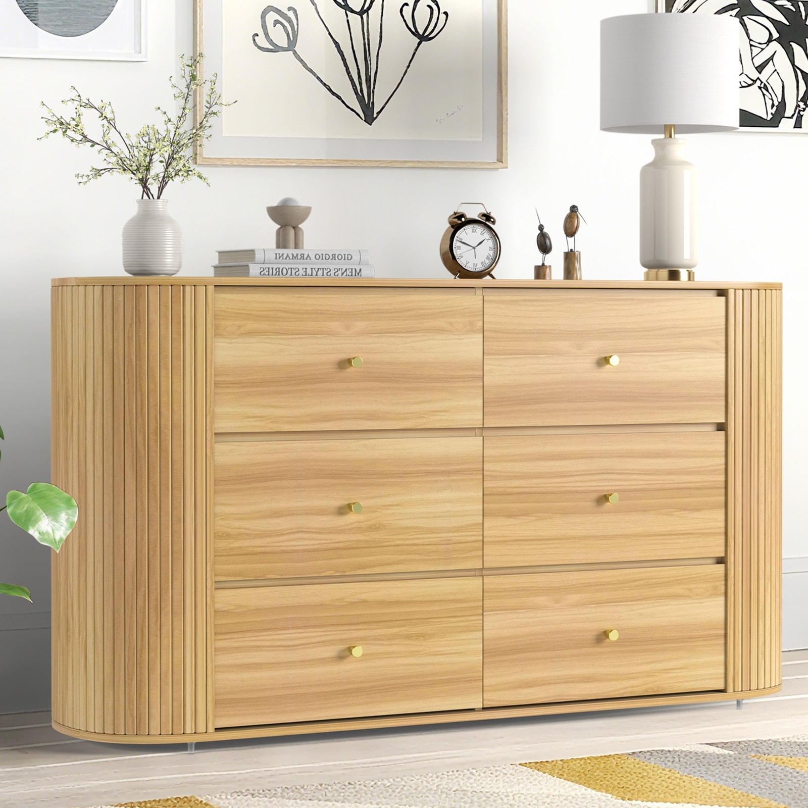 6 Drawers Dresser for Bedroom, 60" Wide Wooden Dresser with Metal Handle
