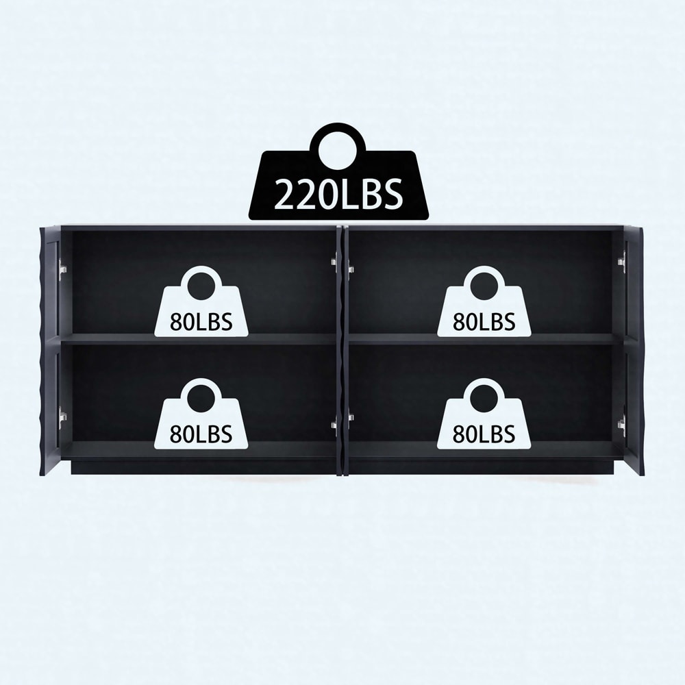 63" Mid-Century Modern Sideboard with 5 Support Legs, 4 Adjustable Shelves - Entryway Storage Cabinet