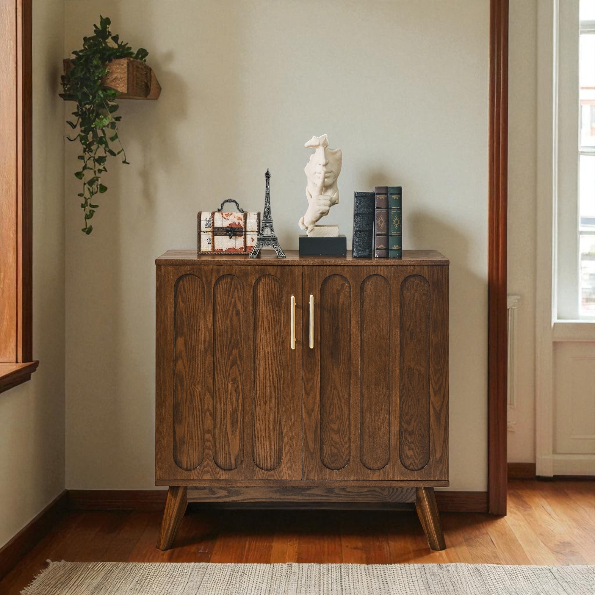 Mid Century Fluted Storage Cabinet with Adjustable Shelves and Outlet Hole, Buffet Sideboard for Entryway, Kitchen, Living Room