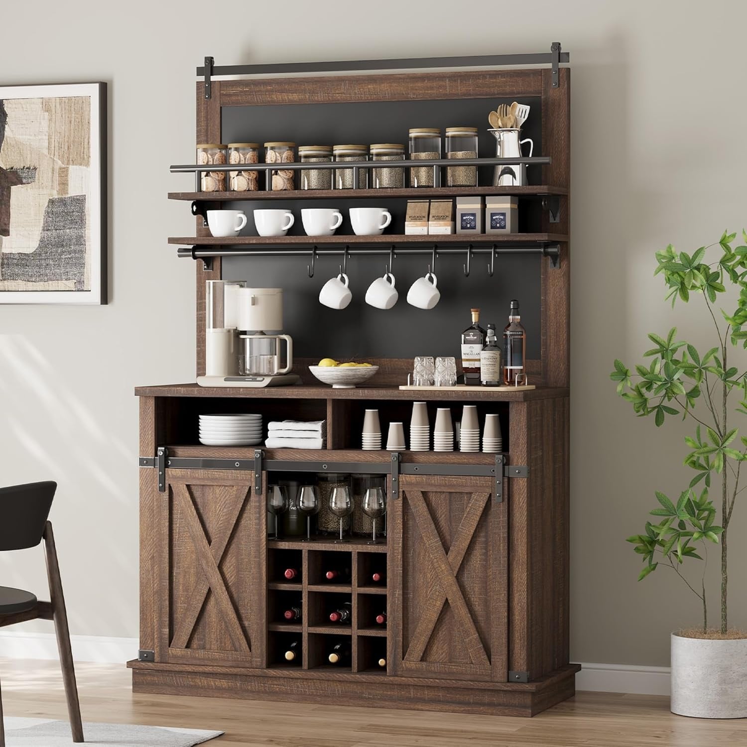 Bar Cabinet 75" Tall Coffee Hutch, Large Kitchens Farmhouse Coffee Bar Cabinet