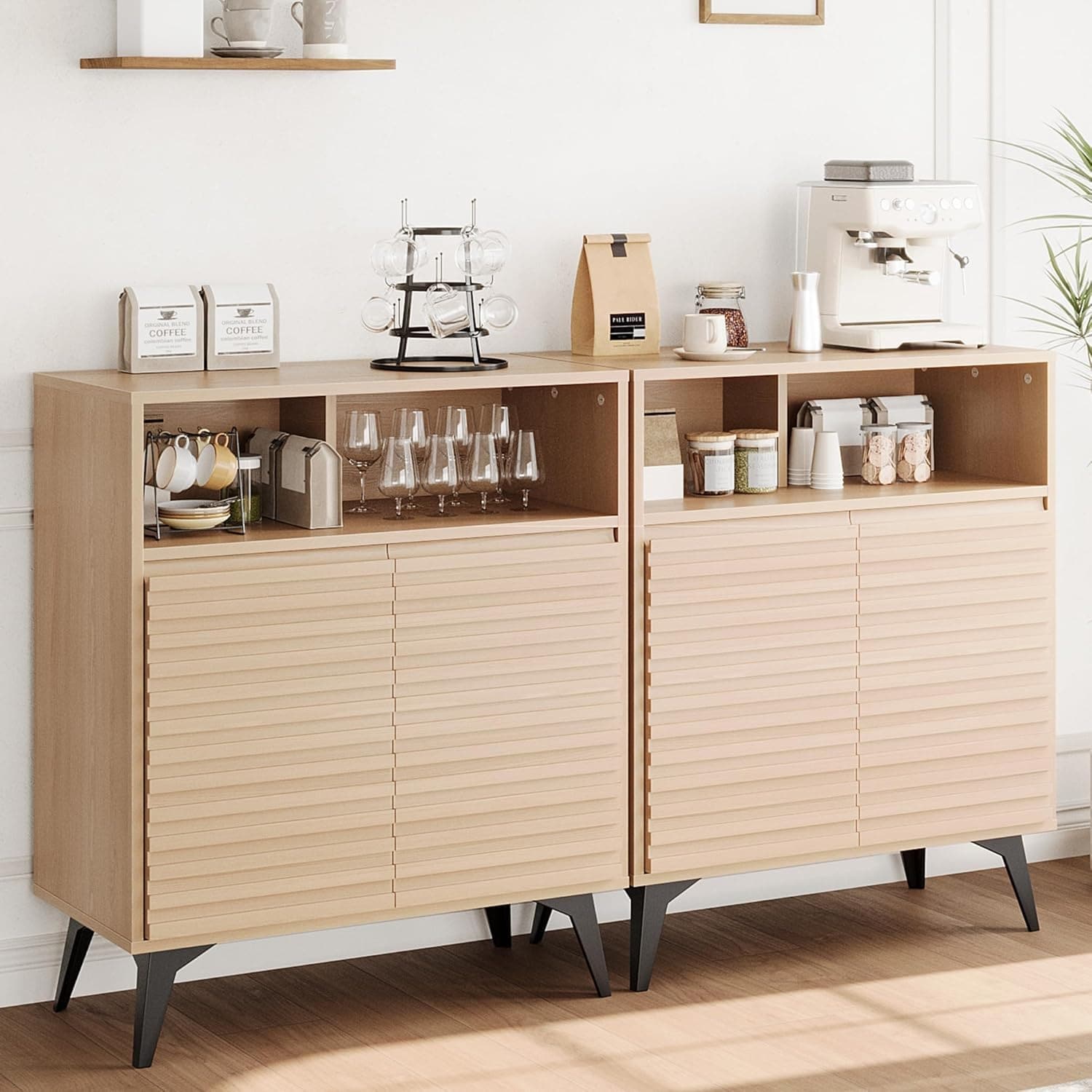Fluted Storage Cabinet Set of 2, Sideboard Buffet Cabinet with Storage & Adjustable Shelves for Living Room, Kitchen