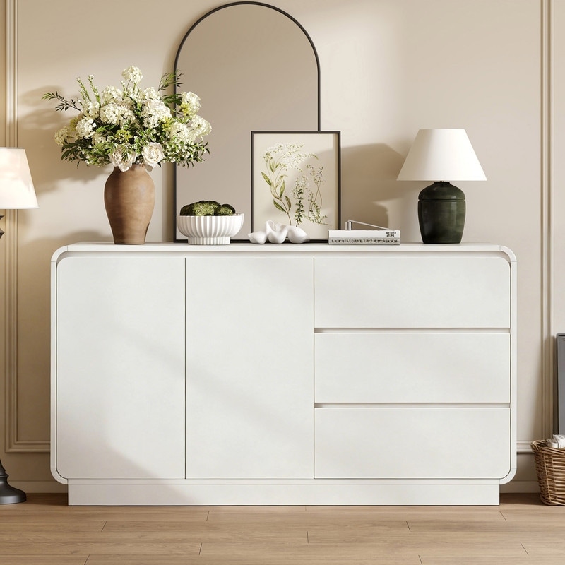 Modern 55.1" Buffet Sideboard with Storage Cabinet and 3 Drawers for Dining or Living Room