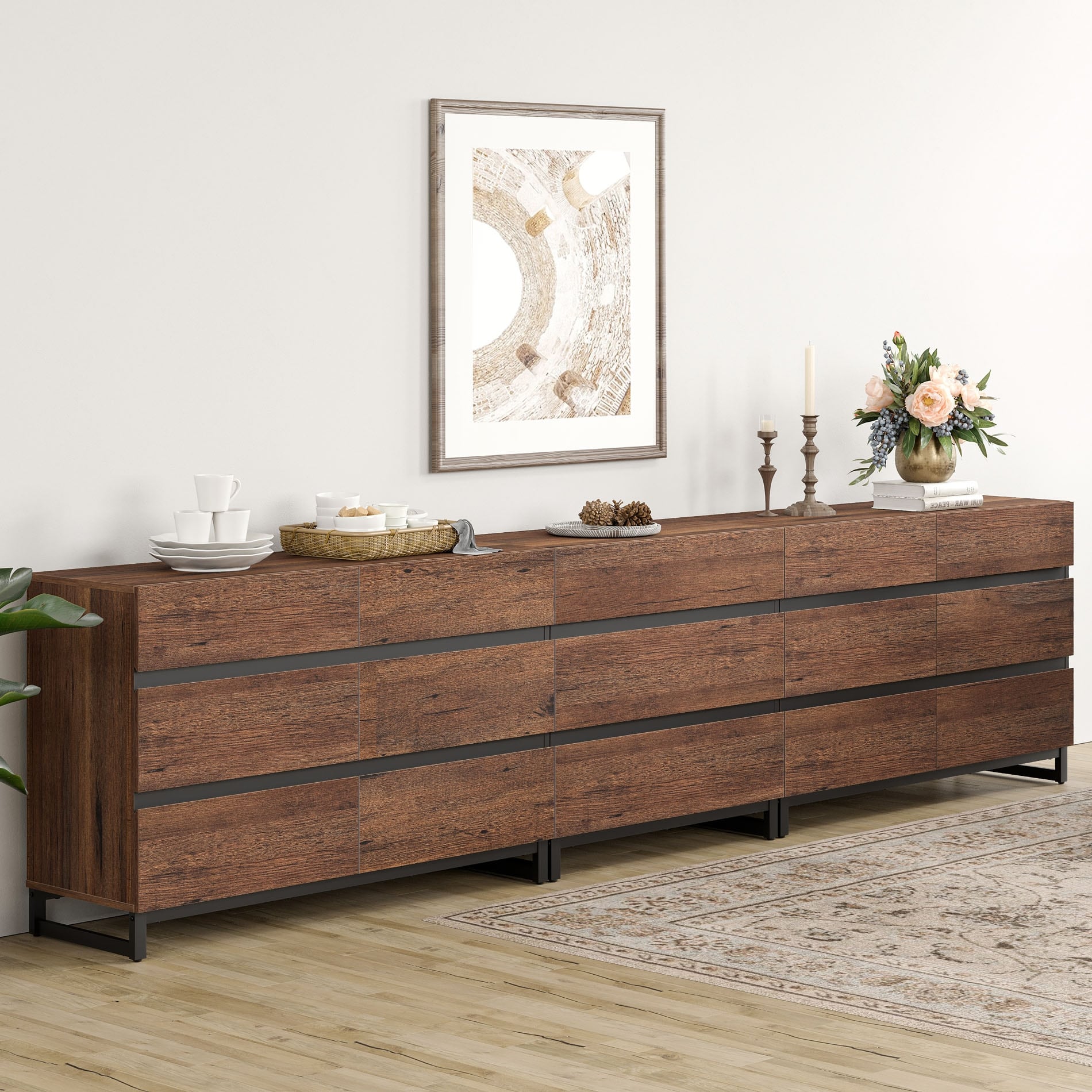 WAMPAT 3 in 1 Modern Sideboard with Adjustable Shelves and 2 Drawers, Coffee Bar Cabinet for Living Room, Kitchen