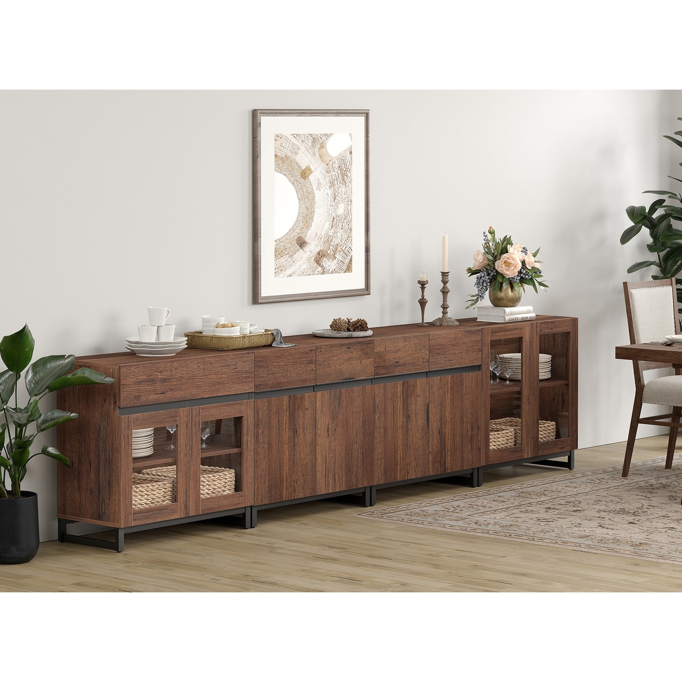 4 in 1 Sideboard Buffet Cabinet with 2 Glass Doors & Drawers, Adjustable Shelf, Metal Base for Living Room, Kitchen