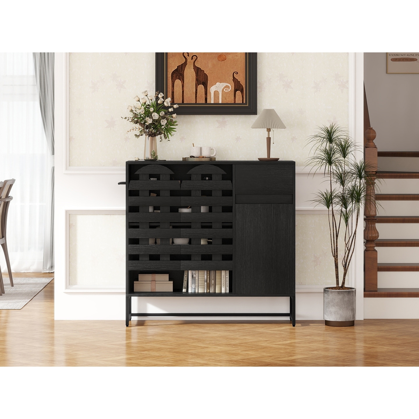 44.49" Black Buffet Cabinet – Woven/Arched Doors, Adjustable Multi-layer Storage, Metal Legs, Woven Door & Drawer.