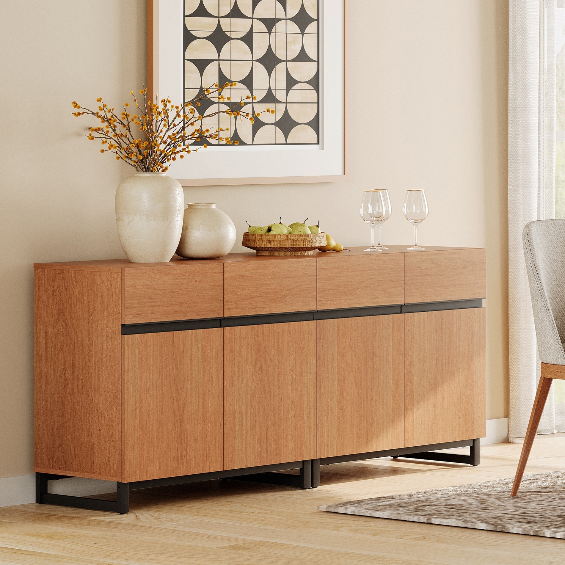 Farmhouse Style 4 Door Wooden Cabinet Sideboard Buffet