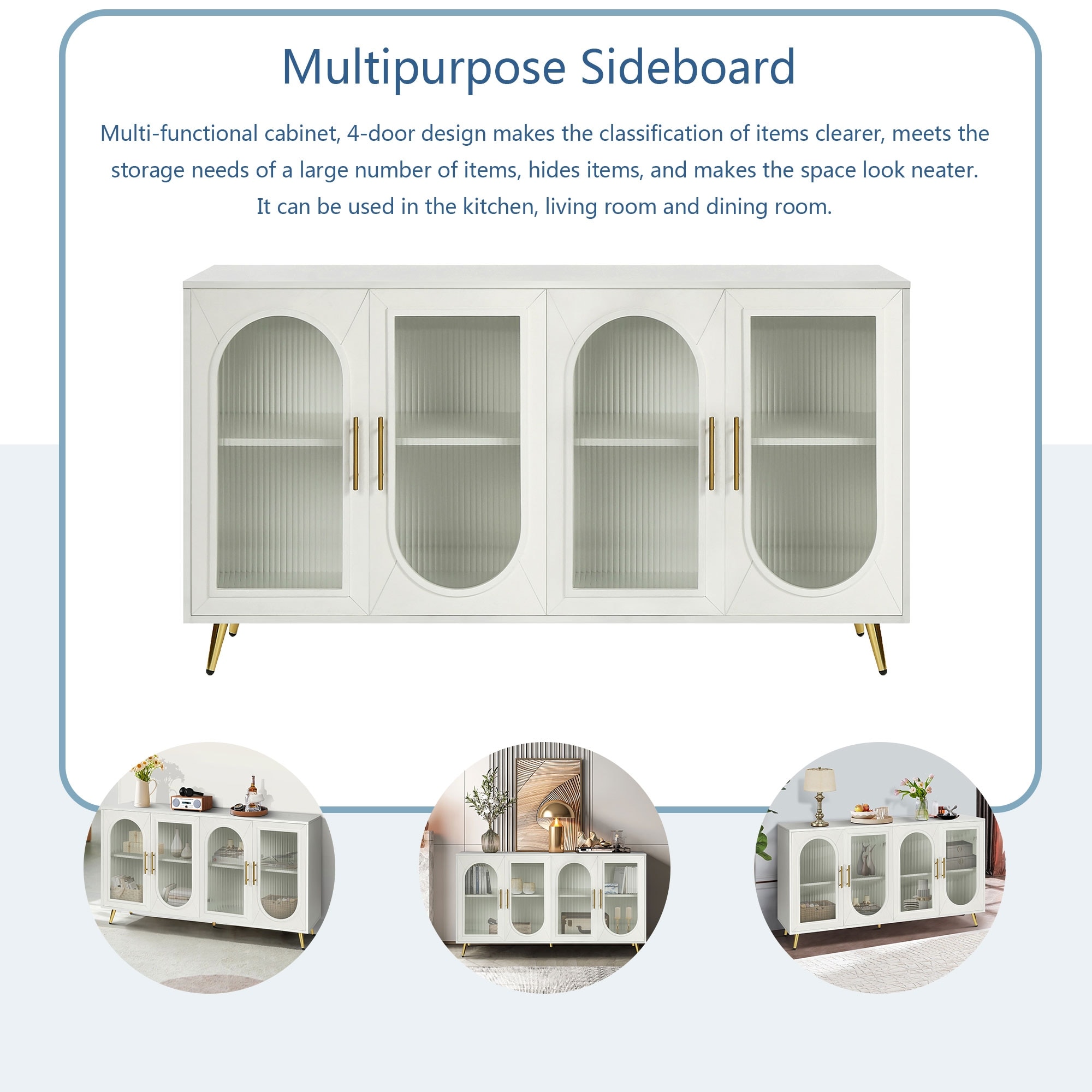 55.1" Modern Storage Cabinet - 2 Doors & 2 Drawers, Stripe MDF Sideboard with Aluminum Handles