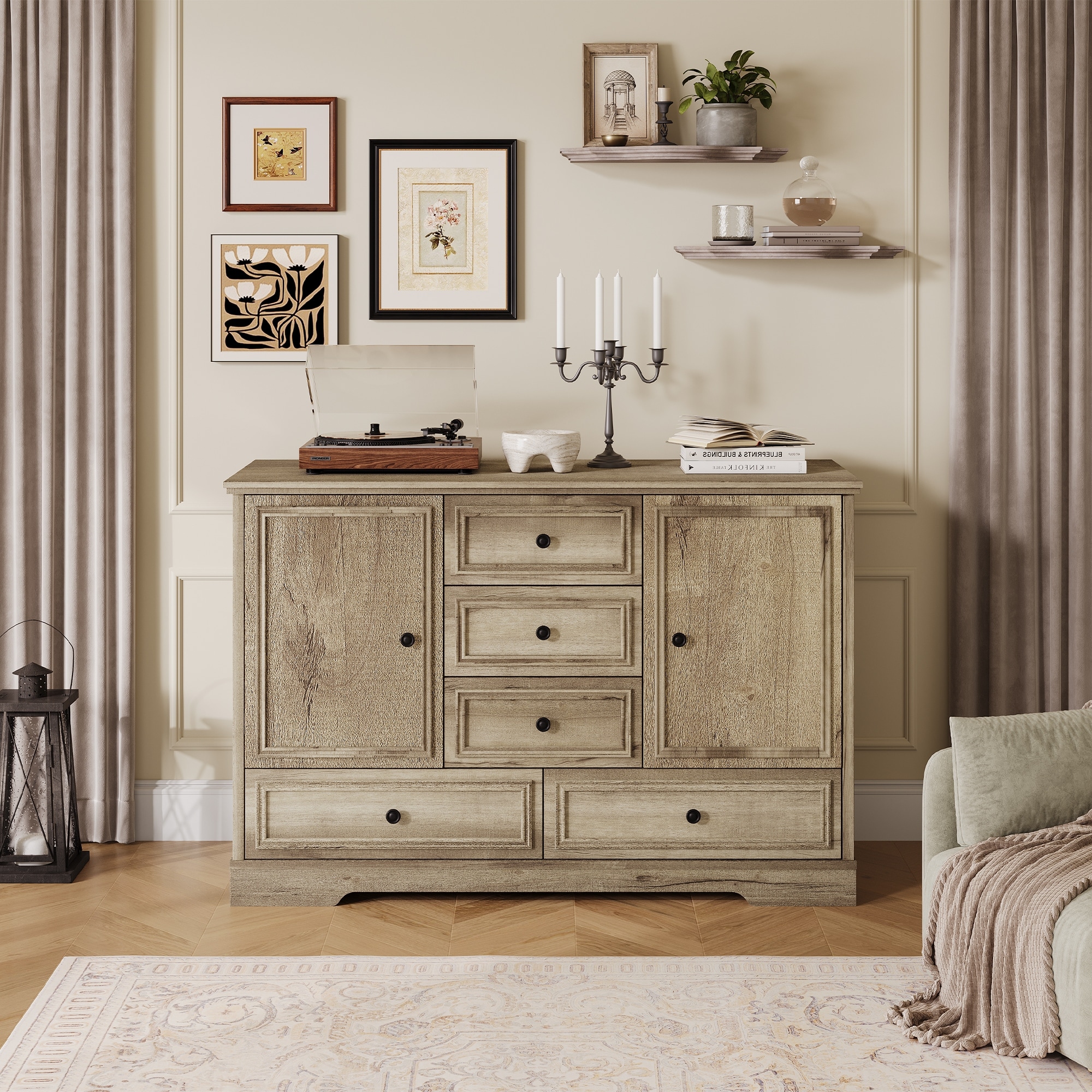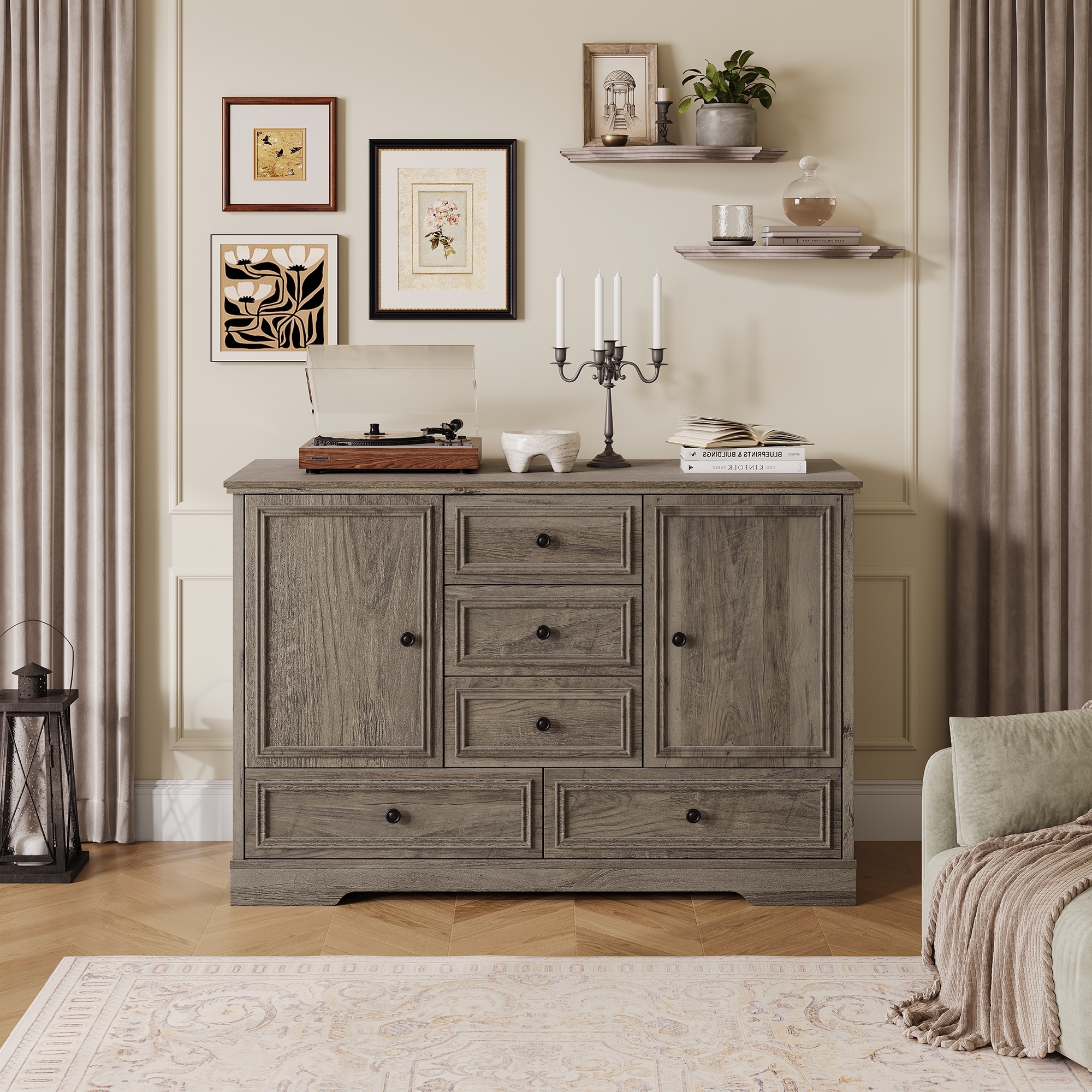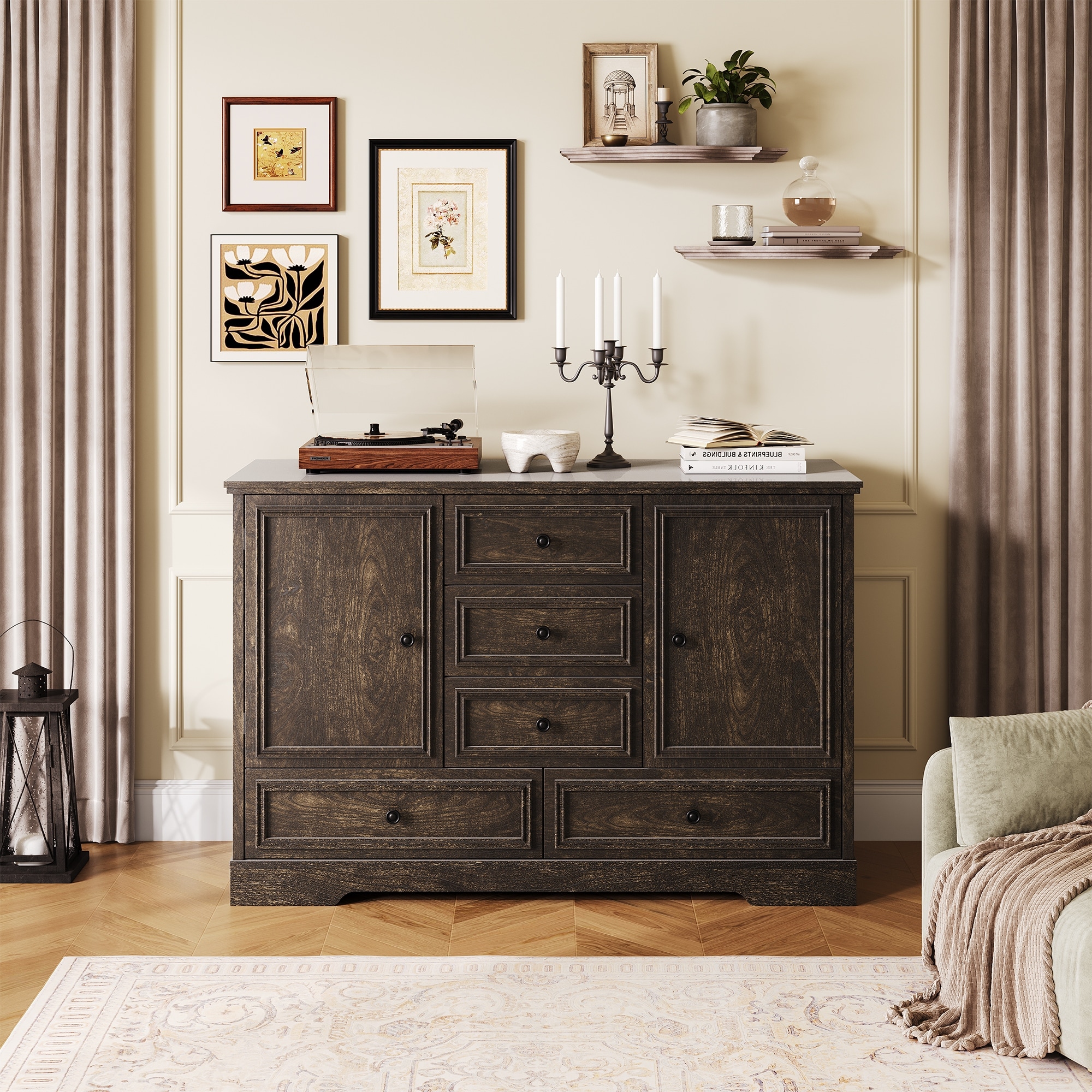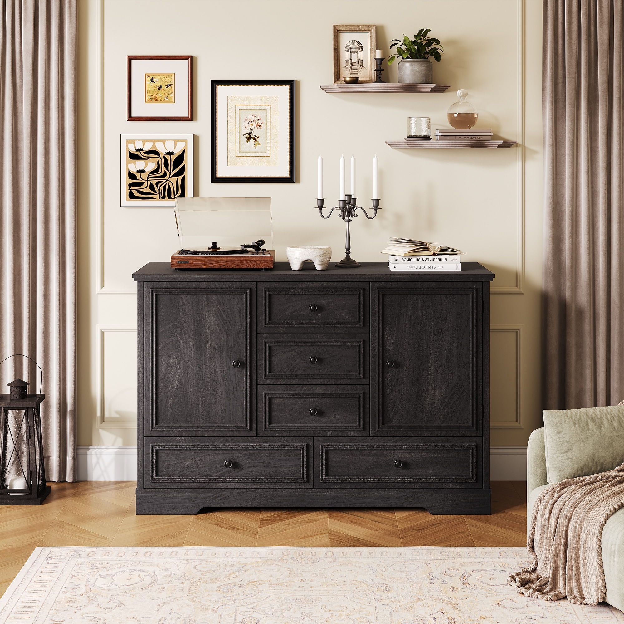 47" Buffet Cabinet with 5 Drawers,Sideboard Buffet Storage Cabinet with Adjustable Shelves and Doors,Coffee Bar Cabinet