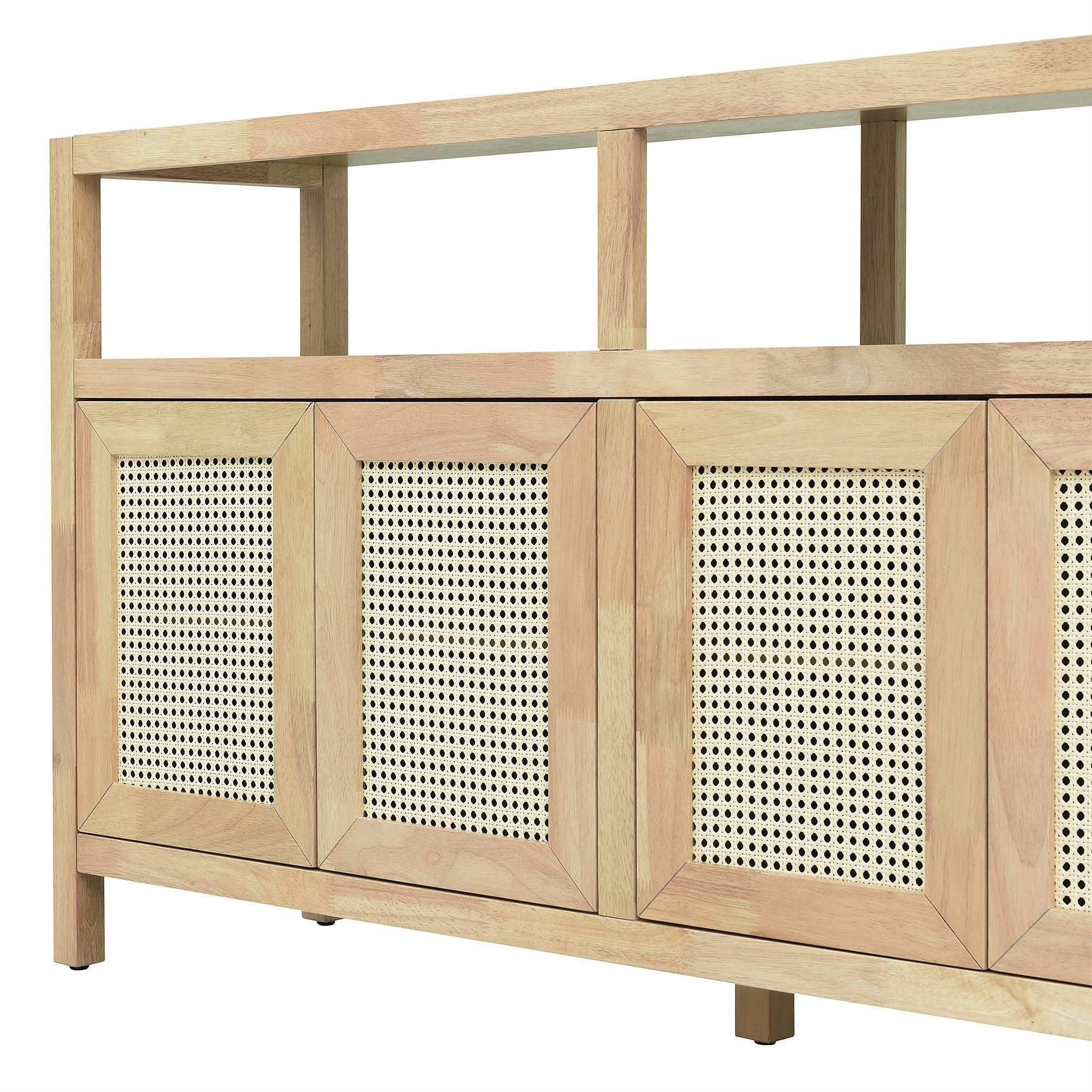Natural Rattan Storage Cabinet with Adjustable Shelf Modern Boho Sideboard Accent Console Table with Metal Legs
