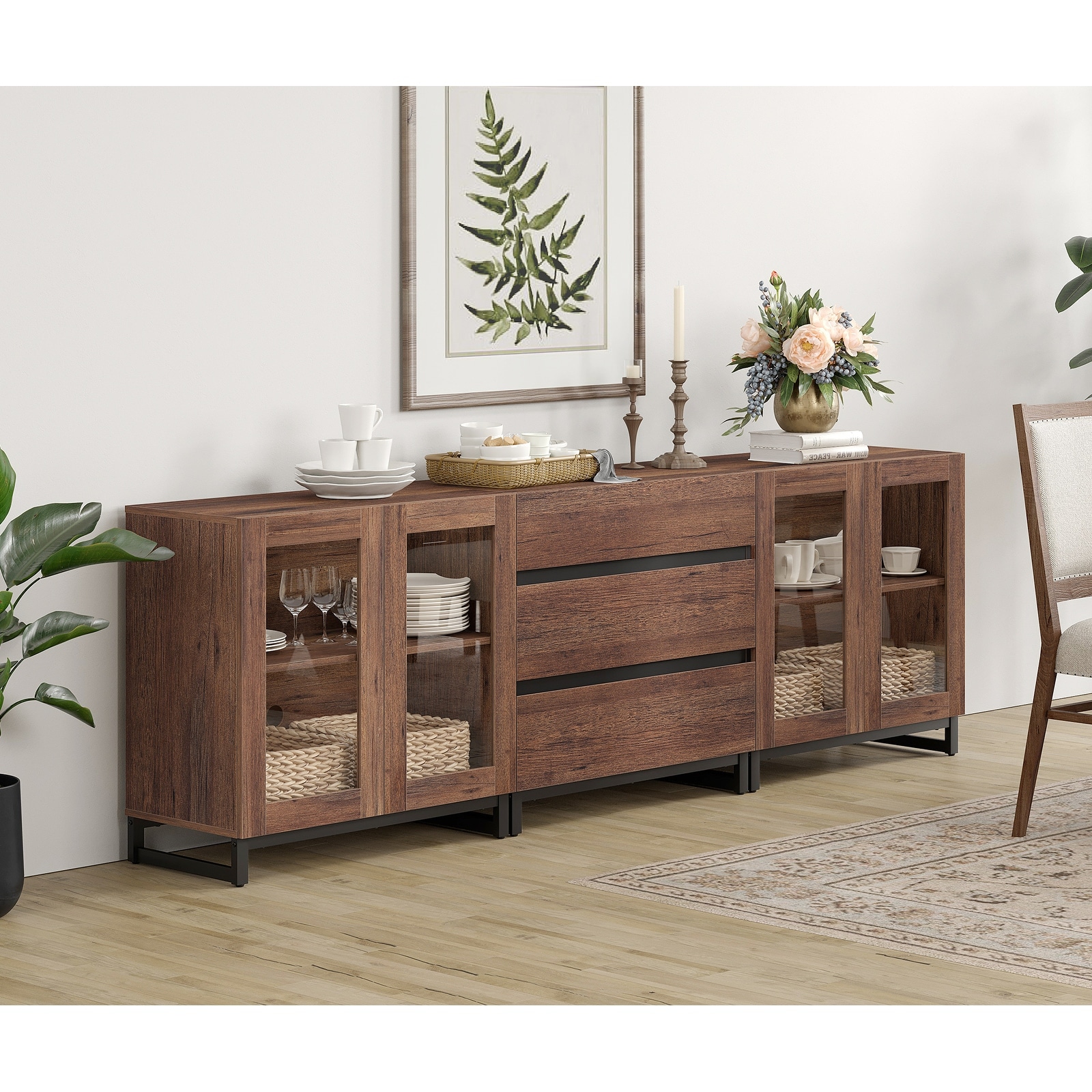 WAMPAT 3 in 1 Modern Sideboard with Glass Doors and 3 Drawers, Coffee Bar Cabinet for Kitchen