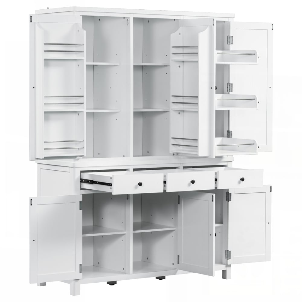 Freestanding Buffet with Hutch , Large Kitchen Pantry Storage Cabinet Cupboard with Pull-Out Side Cabinet