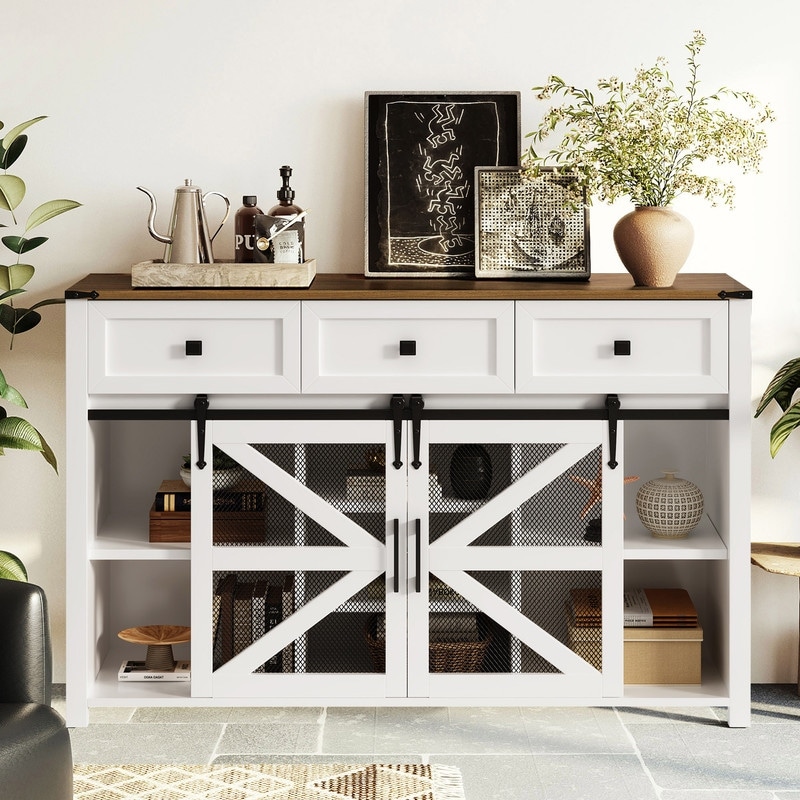 Farmhouse 55" Sideboard with 2 Sliding Barn Doors and 3 Drawers for Stylish Home Storage Solution