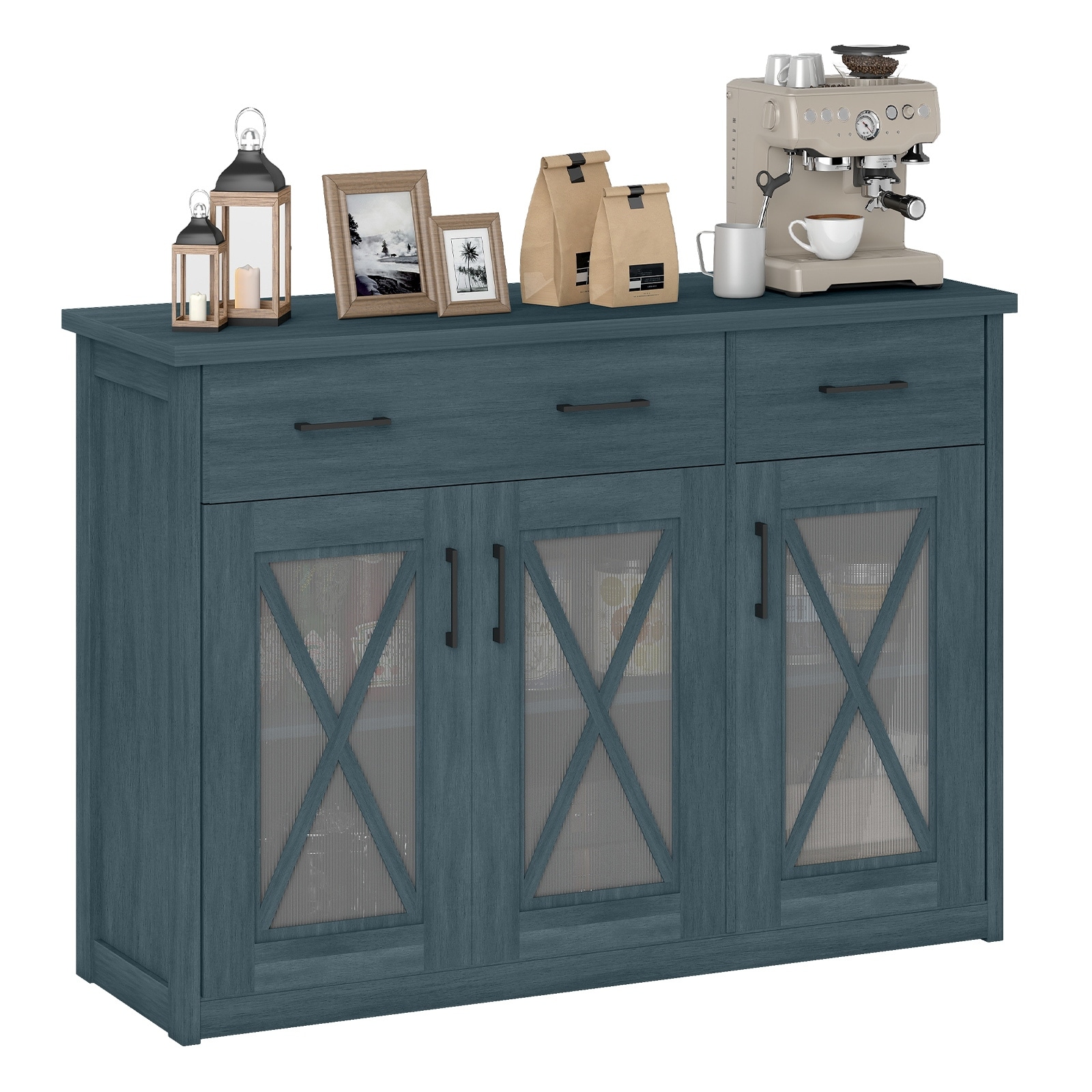 WAMPAT Multifunctional Sideboard Buffet Cabinets with Glass Doors, Modern Sideboard with Adjustable Shelf, Coffee Bar Cabinet