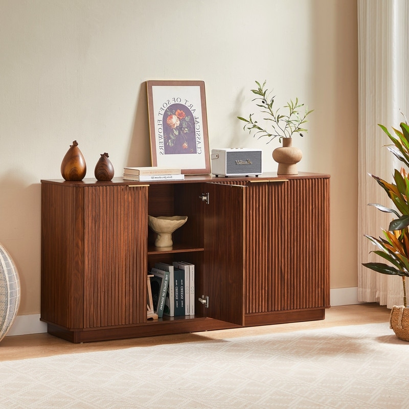 63 Inch Fluted Sideboard Buffet Cabinet with Curved Wave Design for Living Room Storage
