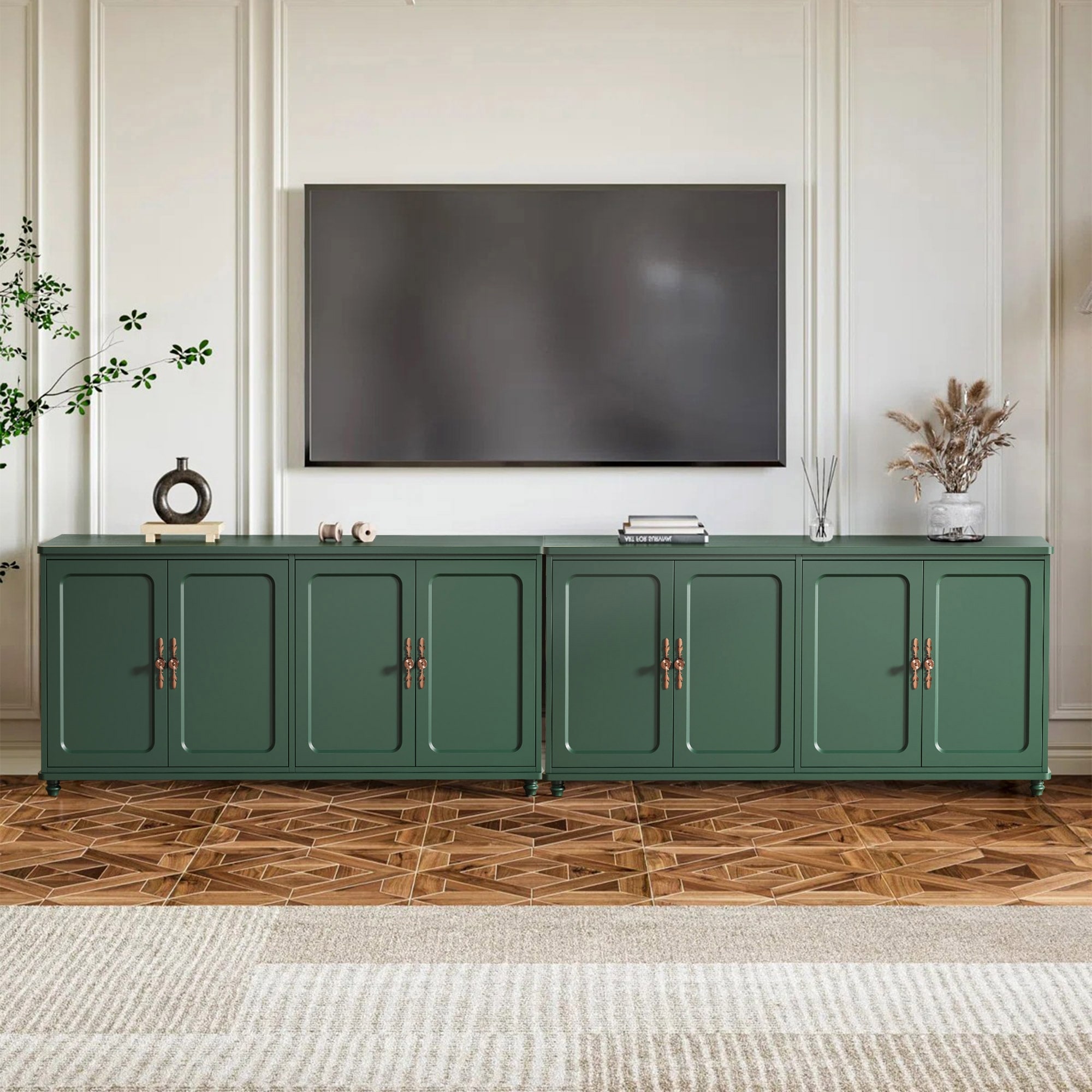 2 PCS 60-in Vintage Modern 4 Door Fluted Sideboard Buffet Cabinet for Dining Room, Living Room,Hallway - MDF