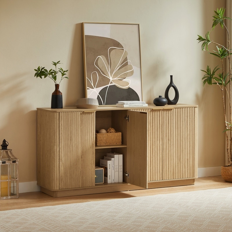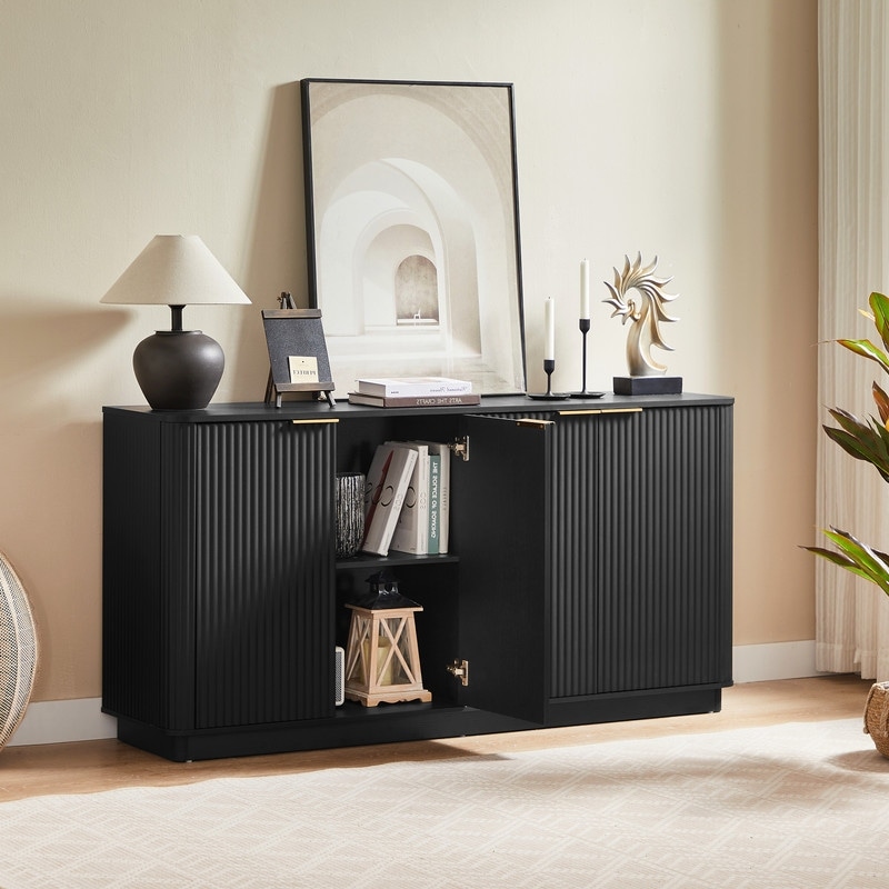 63 Inch Fluted Sideboard Buffet Cabinet with Curved Wave Design for Living Room Storage